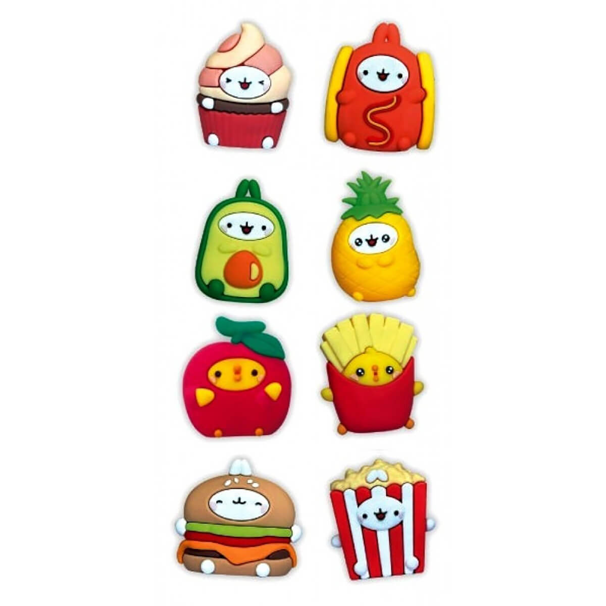 Collect all eight styles including: Cherry, Avocado, Pineapple, Fries, Burger, Popcorn, Hotdog and Sundae.