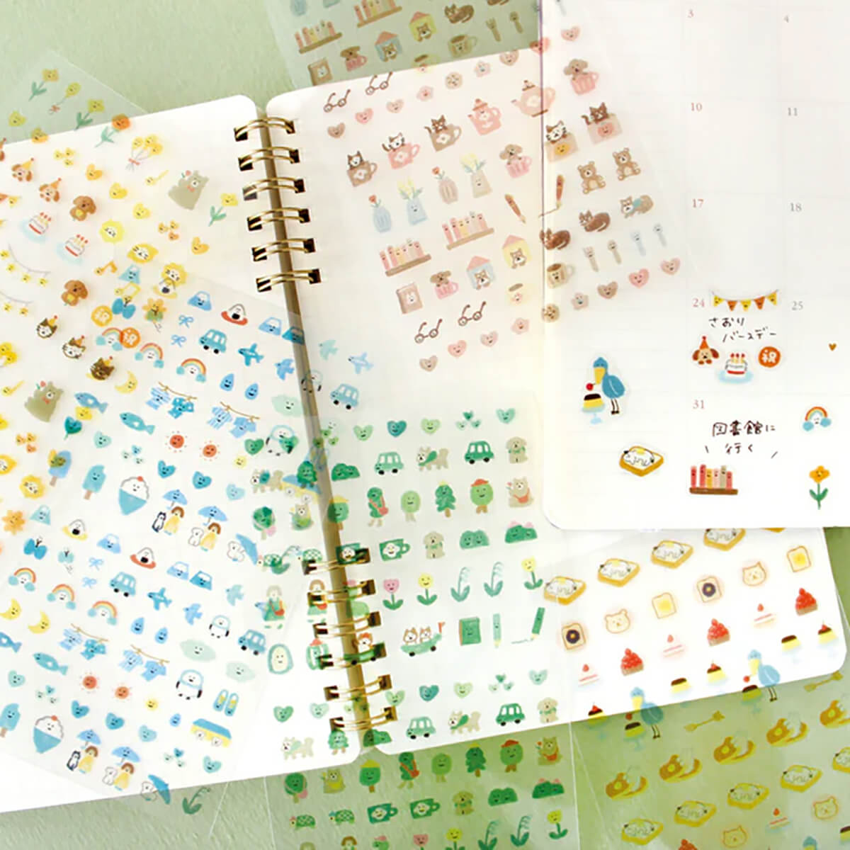 Shiko Watashi-Biyori Weather Blue Stickers by Furukawa Japan. Add some magic to your notes and journals with Furukawa Shiko Watashi-biyori Daily Stickers! Each sticker features a smiley face to bring a little happiness to your day.