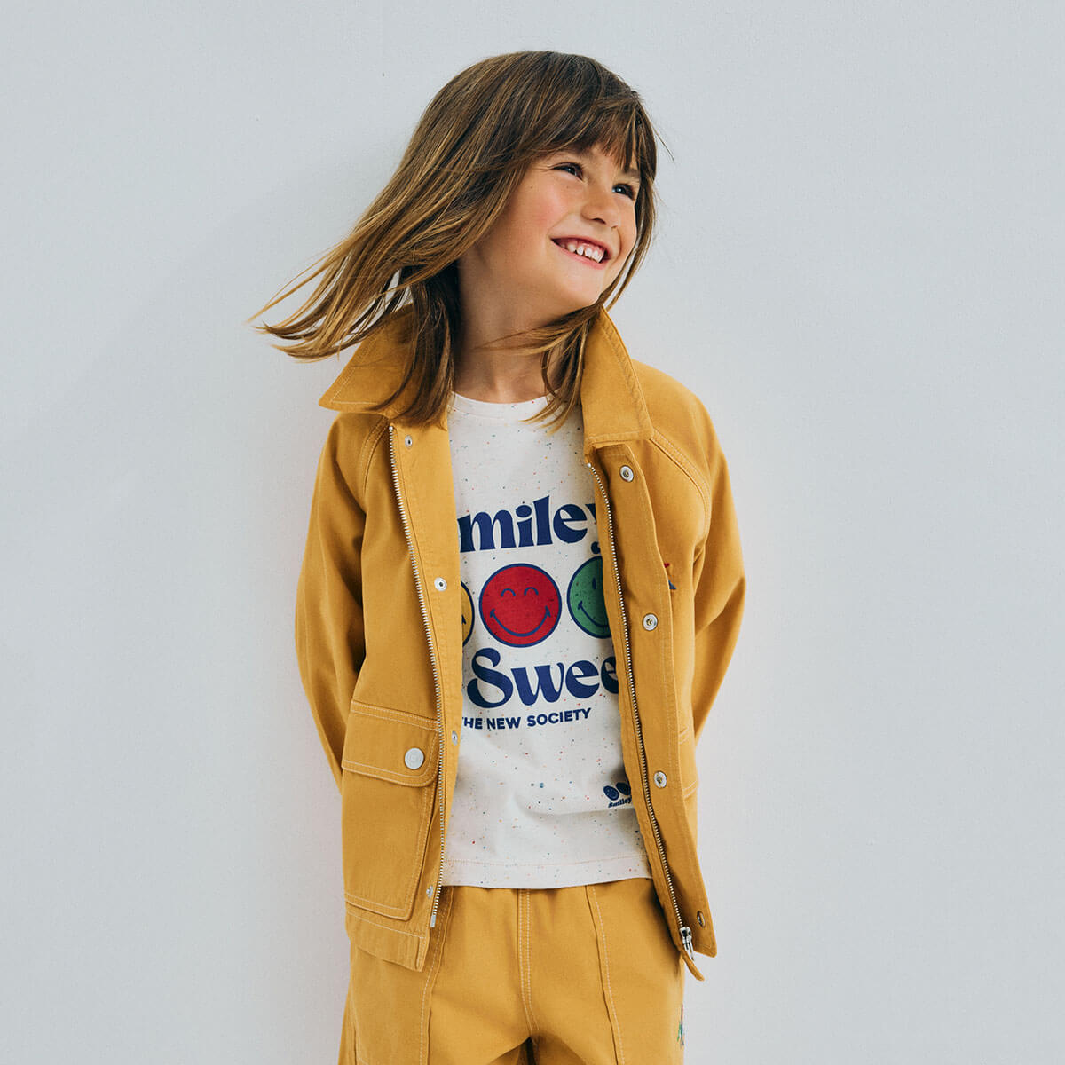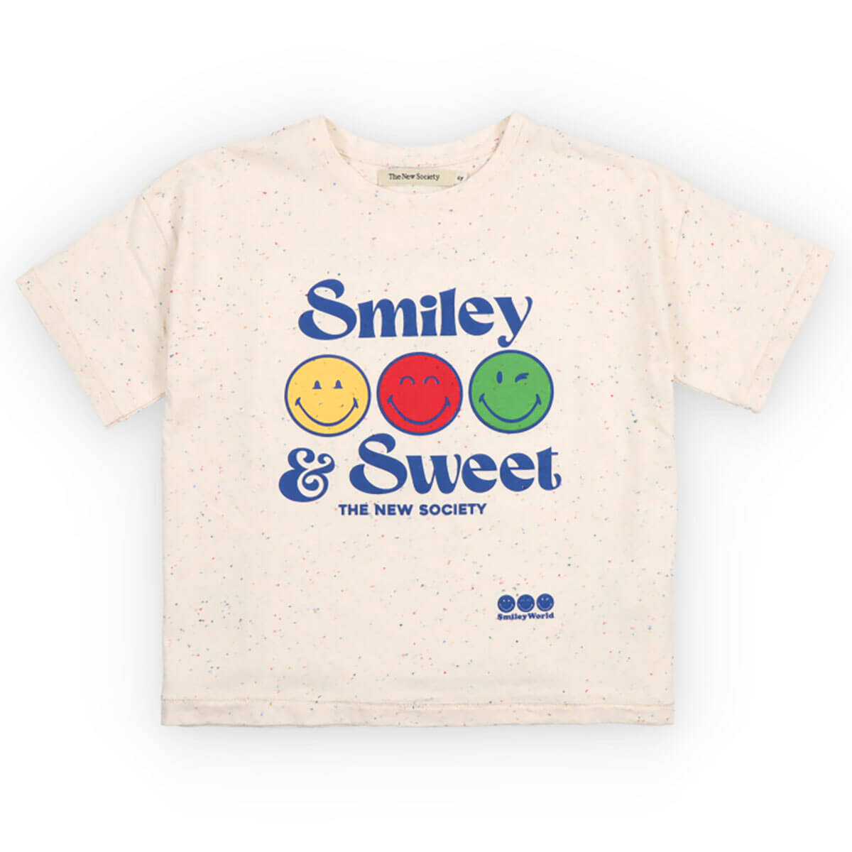 Smiley T-Shirt by The New Society. Tee in a fun speckled jersey fabric with a "SMILEY WORLD" print on the front.