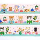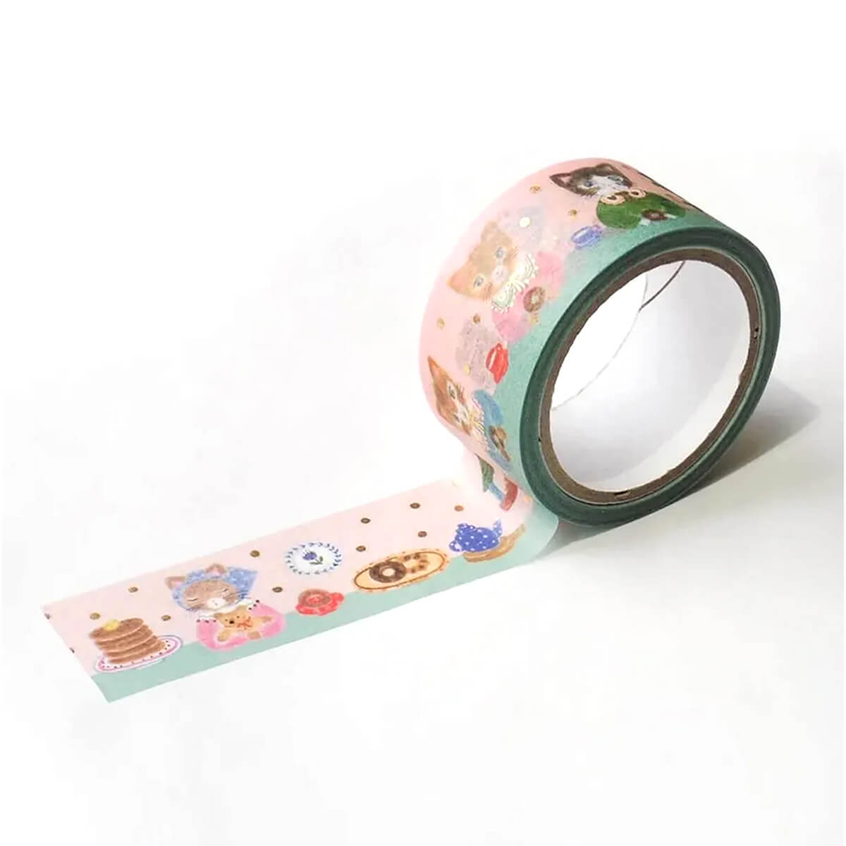 Snack Time 20mm Aiko Fukawa Foil Washi Tape by Cozyca. This Cozyca washi tape by Japanese illustrator Aiko Fukawa shows adorable animals gathered for a happy teatime. Each character is dressed in colorful outfits with delicate gold foil details that sparkle across the design. The cheerful, storybook style feels warm and whimsical, adding a touch of fairy-tale charm to your creative work.