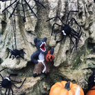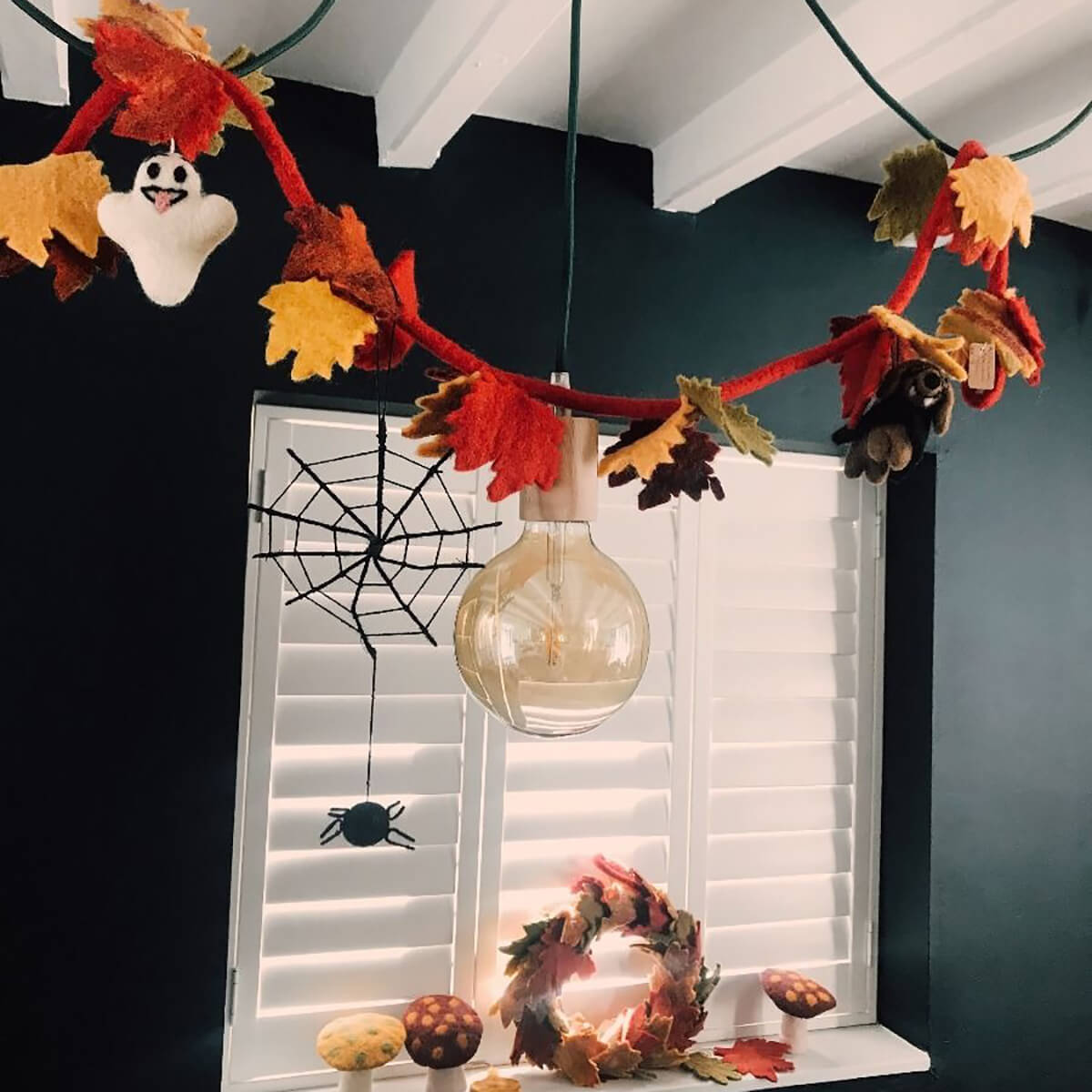 Spooky spiderweb felted Halloween hanging decoration by Felt So Good. Hand needle felted Halloween decoration of a super spooky spiderweb with bendable wire cobweb and it's own scary spider.