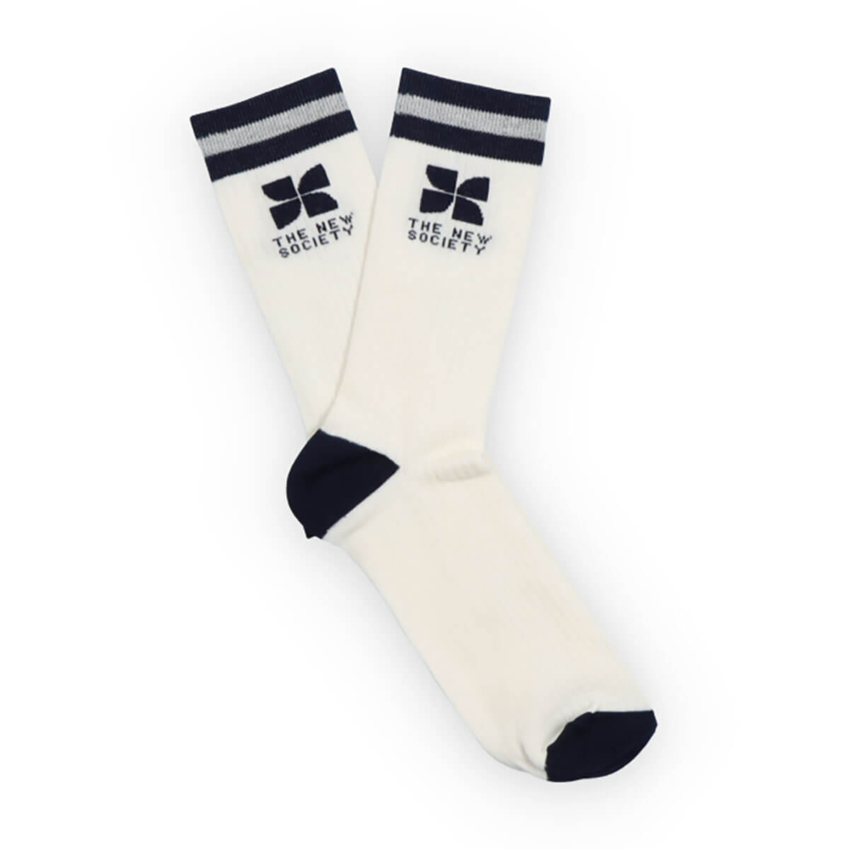 TNS Logo Socks by The New Society. Branded socks in soft ribbed cotton with contrast details and double top stripe featuring contrast logo. Perfect to elevate any look.
