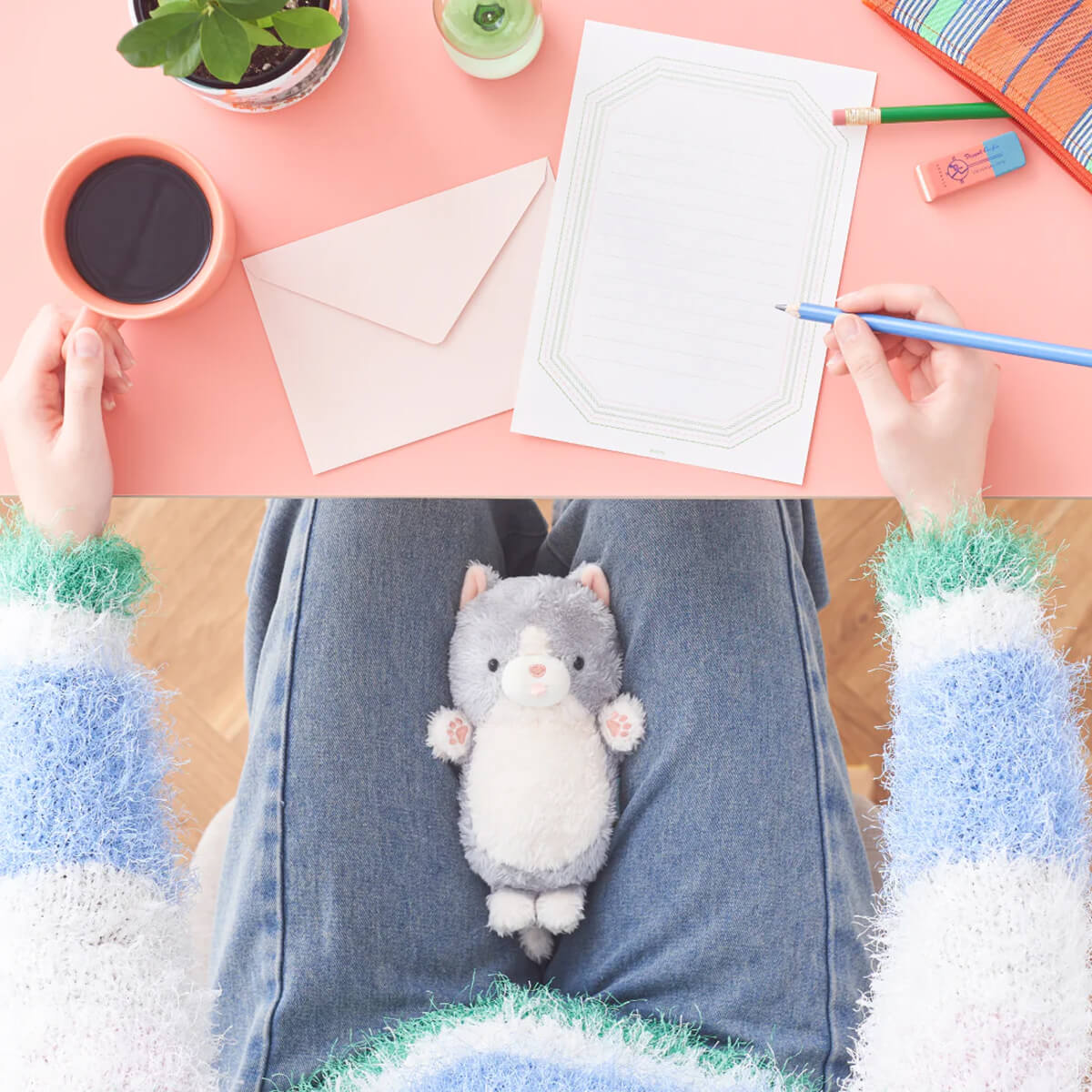 Mugyuuus Cat by Dreams (Sonny Angel). Exercise while you work or study with this weighted cuddly friend. Weighing 420g, this sweet plush helps tone your body but is much cuter than your usual exercise equipment. Place Mugyuuus between your legs, squeeze with your ankles or lift in your arms for easy, consistent exercise! Perfect for maintaining good posture and low-impact toning. He helps you stay straight and concentrate, while providing soothing comfort.