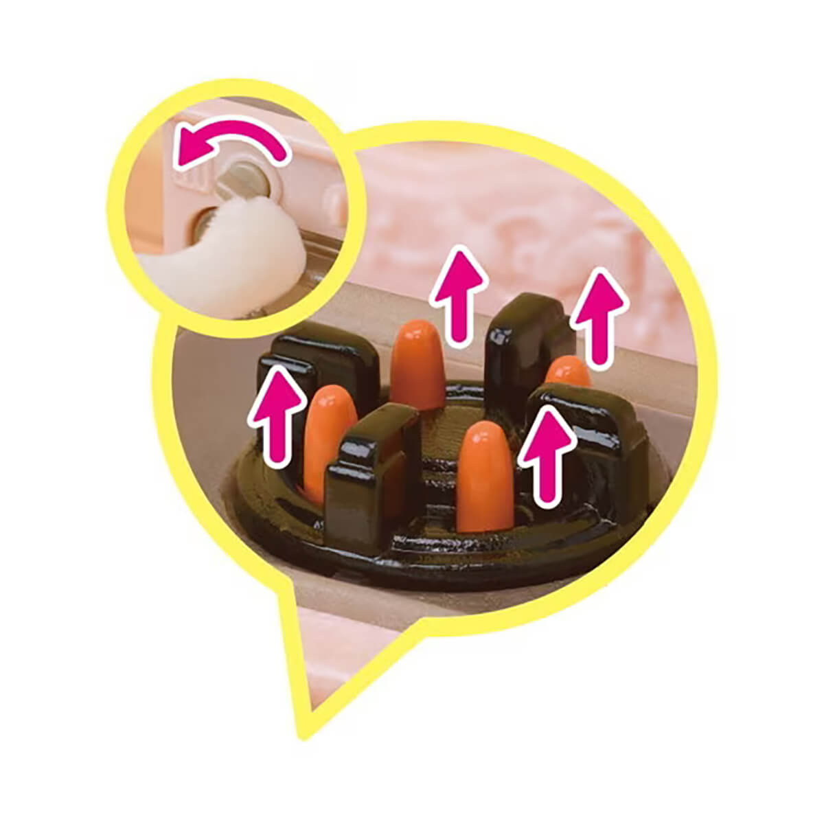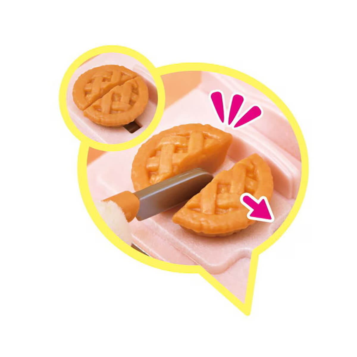 The set includes: Chocolate Rabbit Mother, Cooker, Kitchen Counter, Drawer, Fridge, Freezer Compartment, Tray, Sink, Toilet, Apple Pie (Half) x2, Baguette (Half) x2, Knife, Frying Pan, Spatula, Pancake, Flour, Egg, Milk, Apple, Cup x3, Ice x3.
