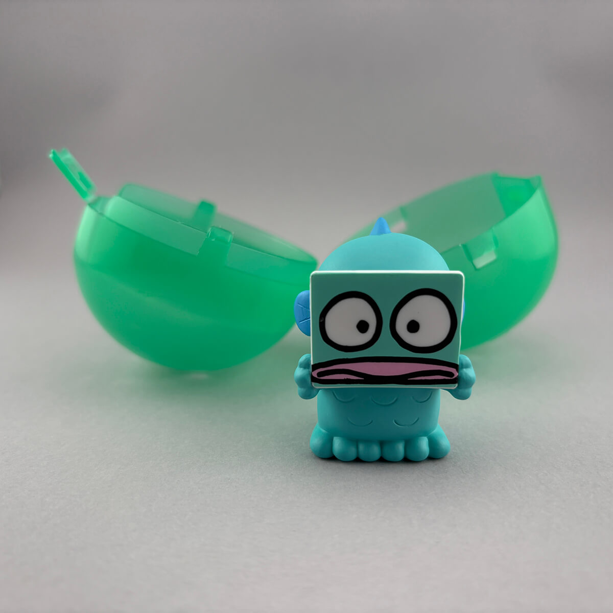 There are five Sanrio characters in this Gachapon series: Hangyodon, My Melody, Hello Kitty. Kuromi and Cinnamoroll.