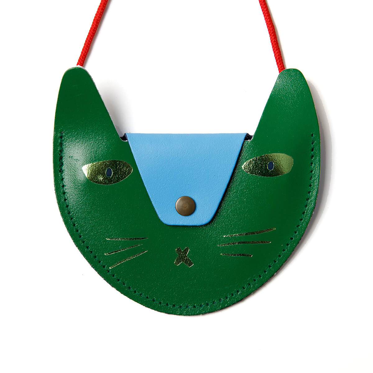 Cat Pocket Purse In Bright Green by Ark Colour Designs