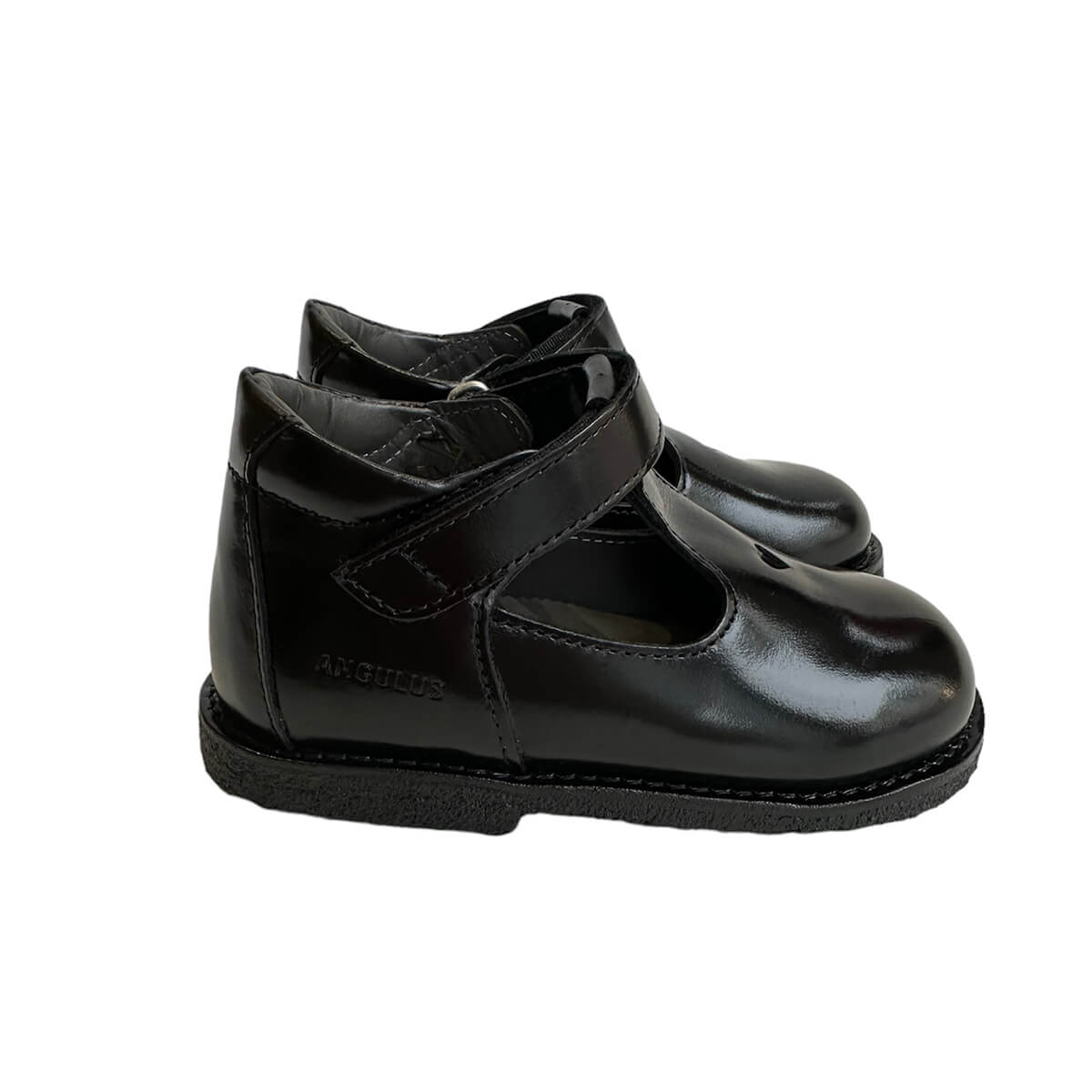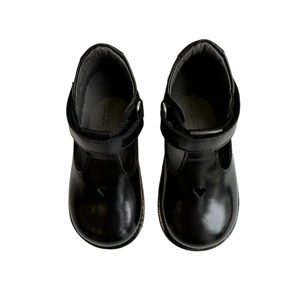 Heart T Bar Starter Mary Janes in Black by Angulus - Last Ones In Stock - 20-22 EUR