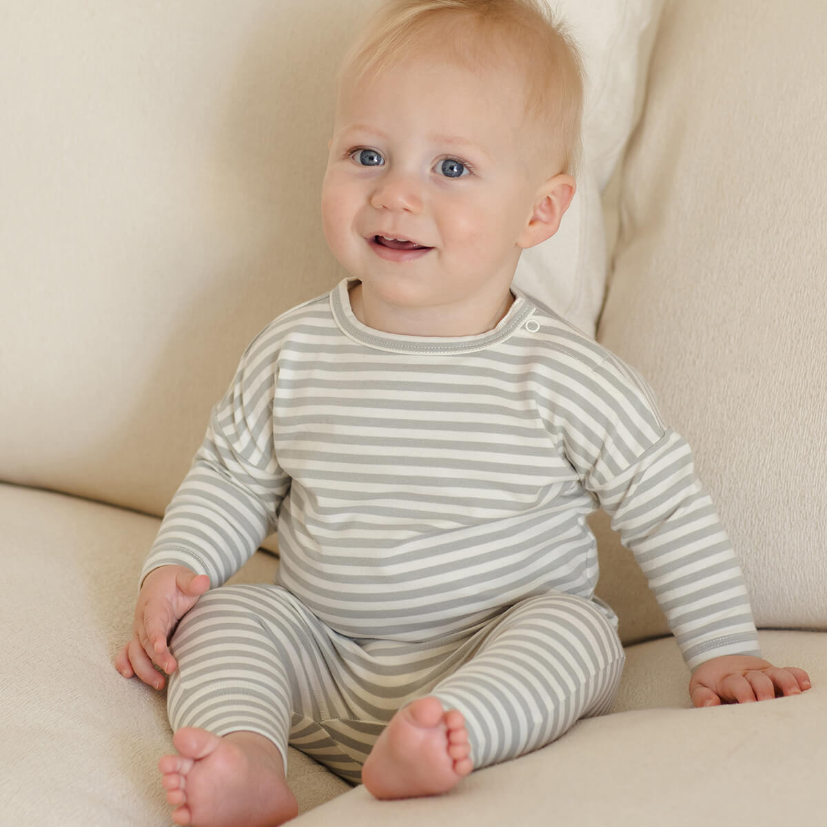 Long Sleeve Tee in Sage Stripe by Quincy Mae