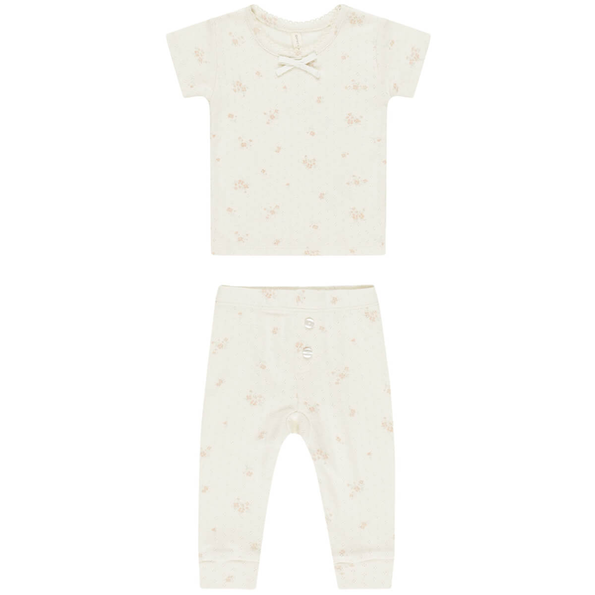 Pointelle Tee and Legging Set in Pink Ditsy by Quincy Mae