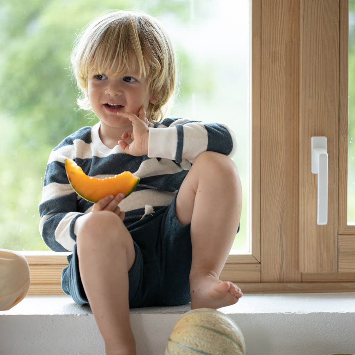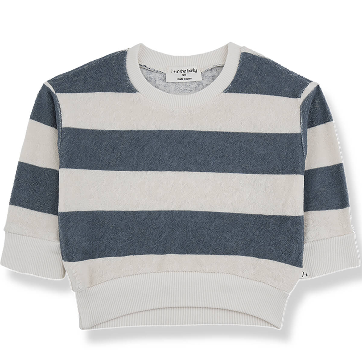 Stefano Sweater by 1+ in the Family. Long-sleeve striped jersey sweatshirt style top in a super soft terry fabric. This sweatshirt has a ribbed neck and cuffs.