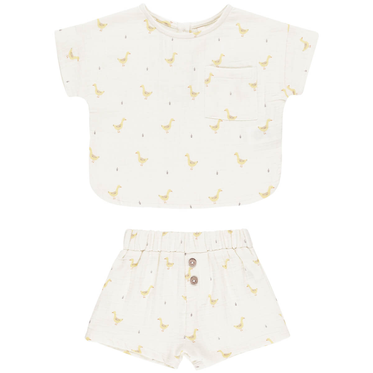 Woven Boxy Top + Short Set in Geese by Quincy Mae
