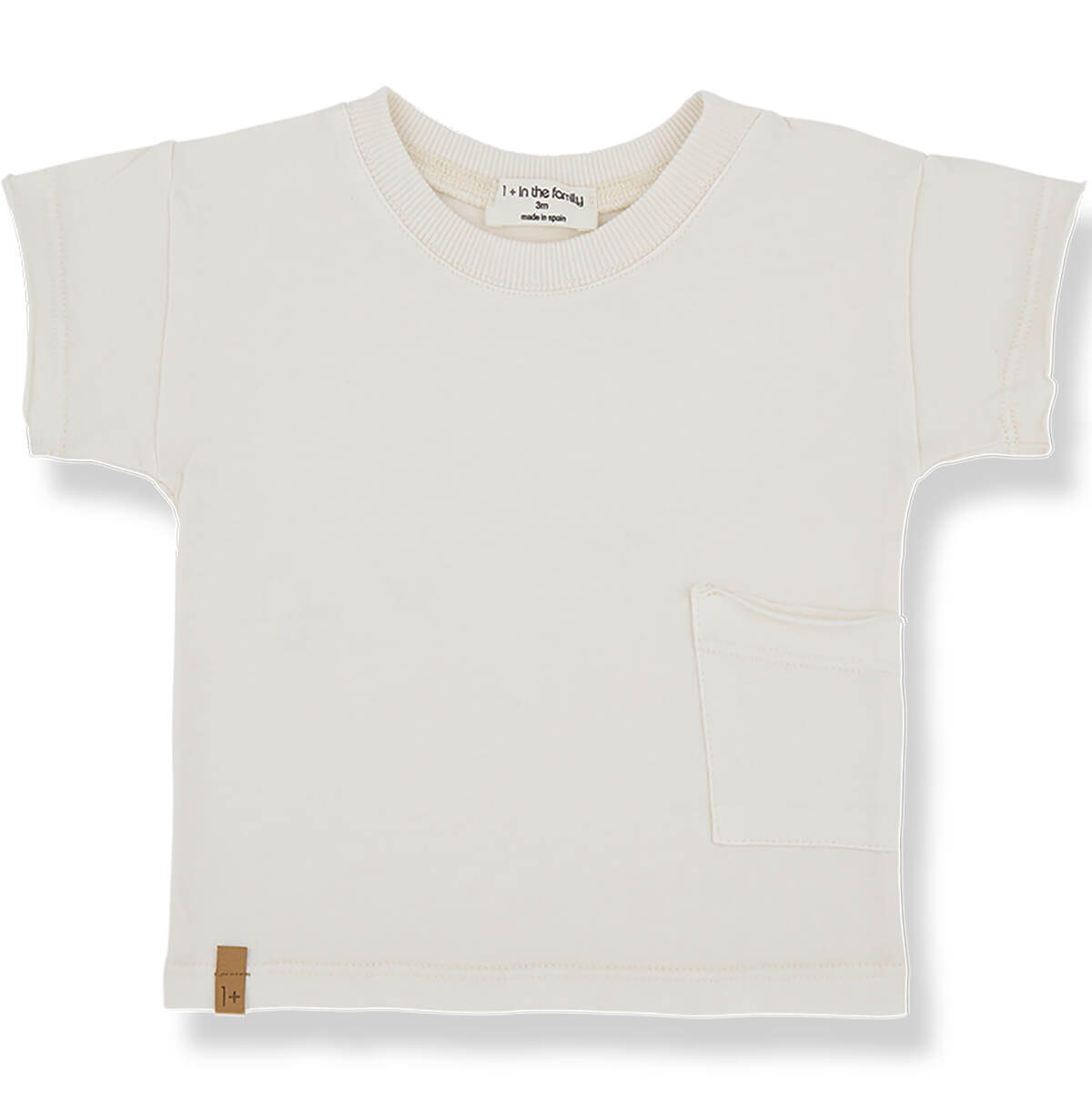 Xevi Top by 1+ in the Family. Short-sleeve plain jersey tee in a super soft cotton fabric. This t-shirt has a ribbed neck, side pocket and raw edge detailing.