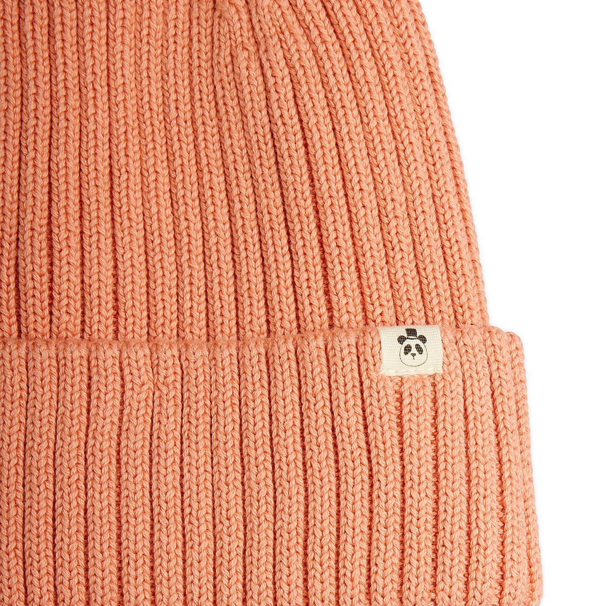 Knitted Rib Fold Up Hat in Pink by Mini Rodini