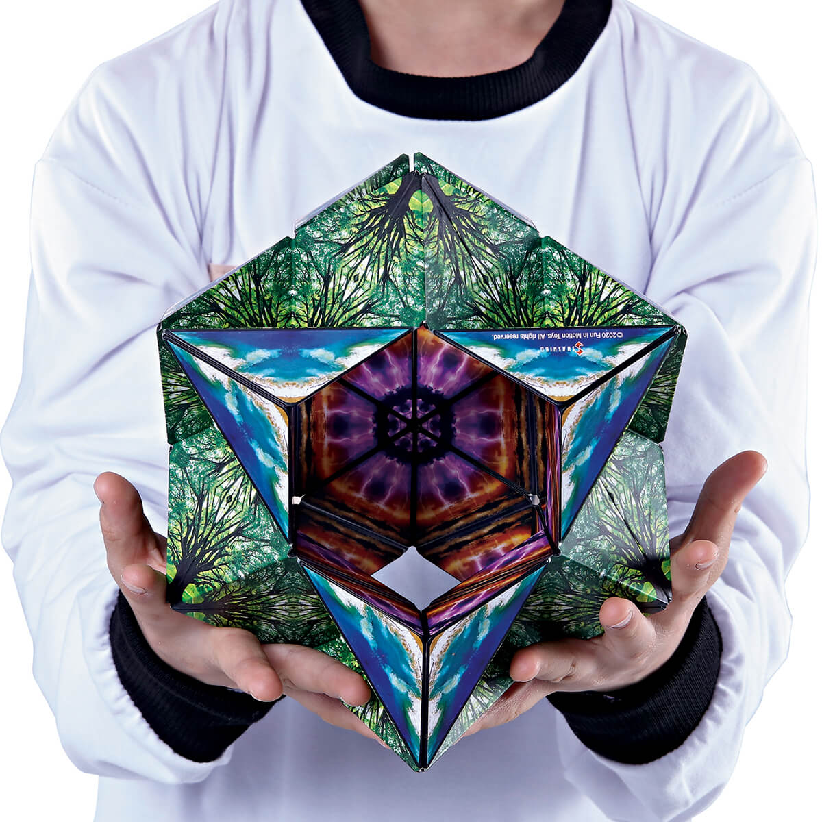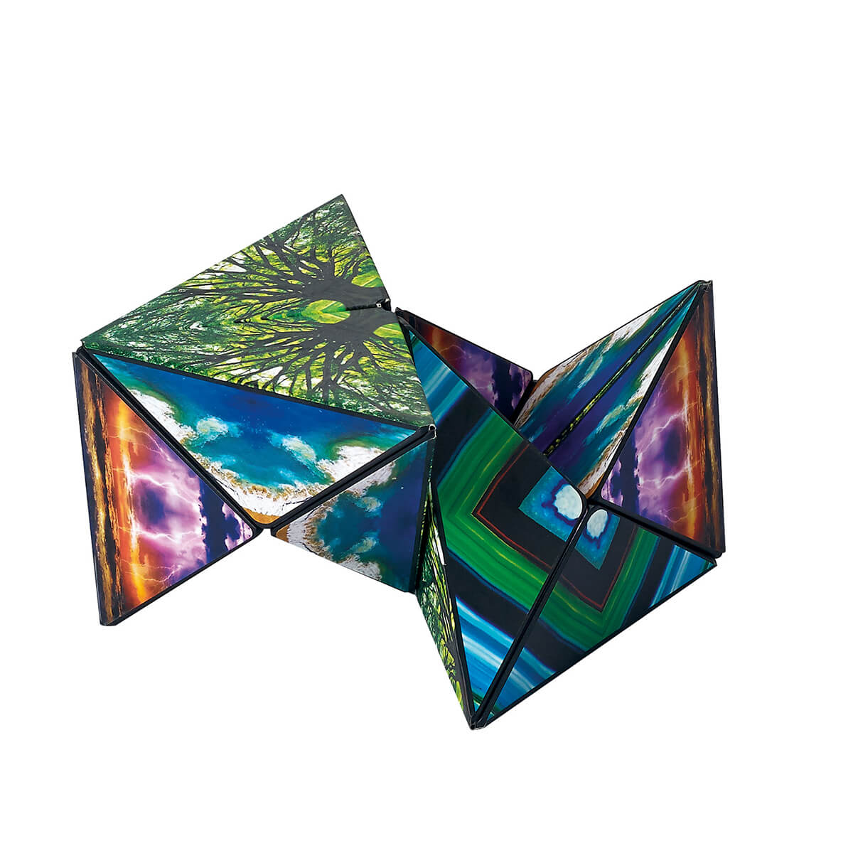 Shashibo Magnetic Puzzle by Bandai. Unlock the geometric secrets of Shashibo Assortment Series 1 Magnetic Puzzle. These mysterious magnetic toys transform into over 70 shapes. It may look like an ordinary box on the outside, but each Shashibo has a kaleidoscope effect once you open it and begin to connect the magnets to create geometric shapes.