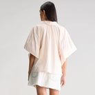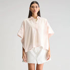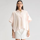 Cairn Short Sleeve Shirt by Bellerose. An oversized boxy fit shirt with dropped shoulders, half open shirt collar and mother of pearl buttons.