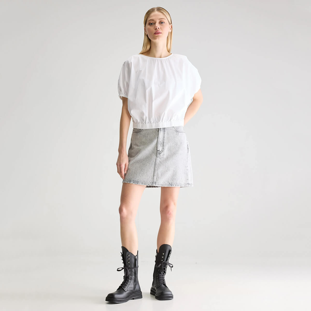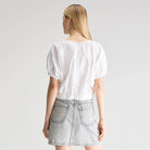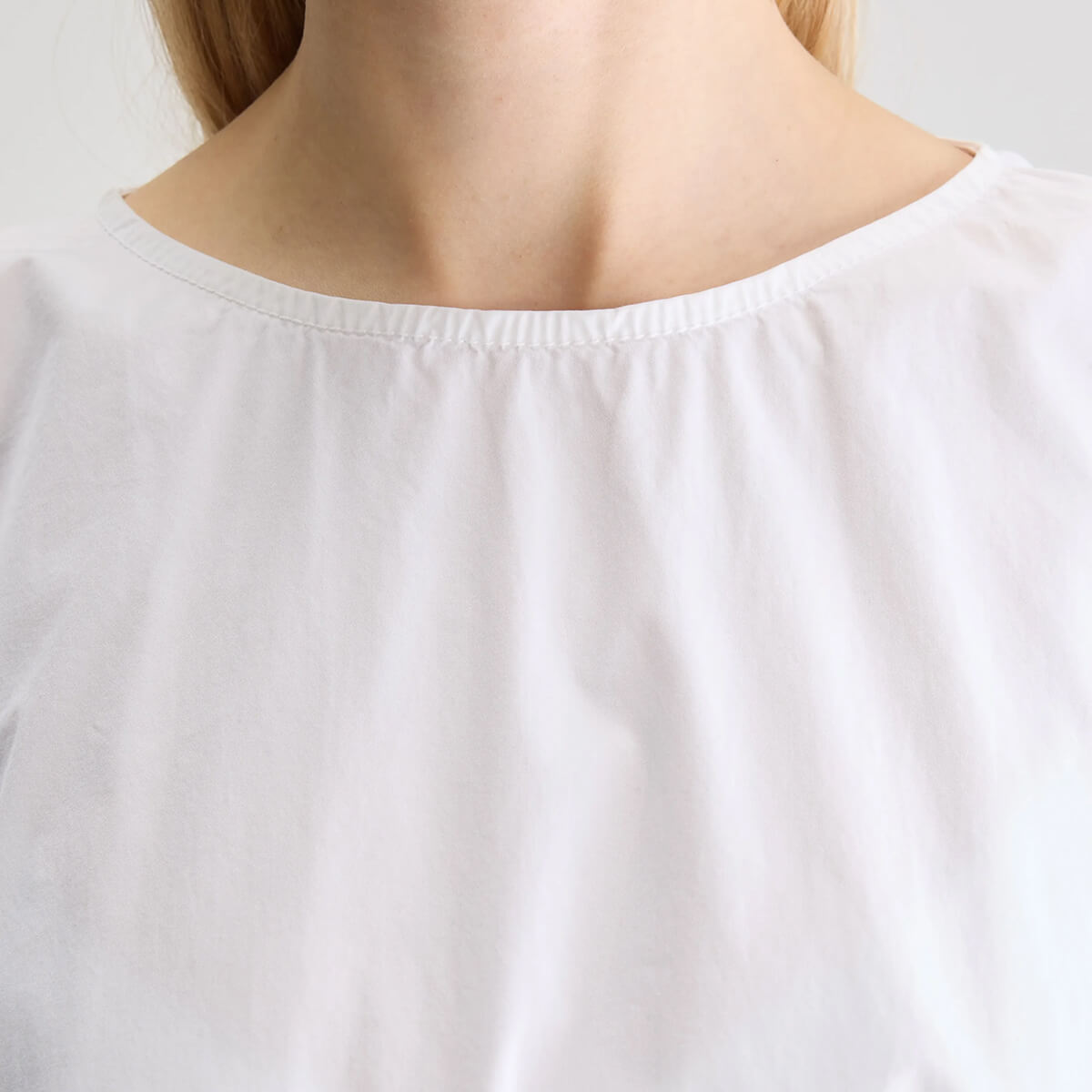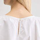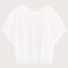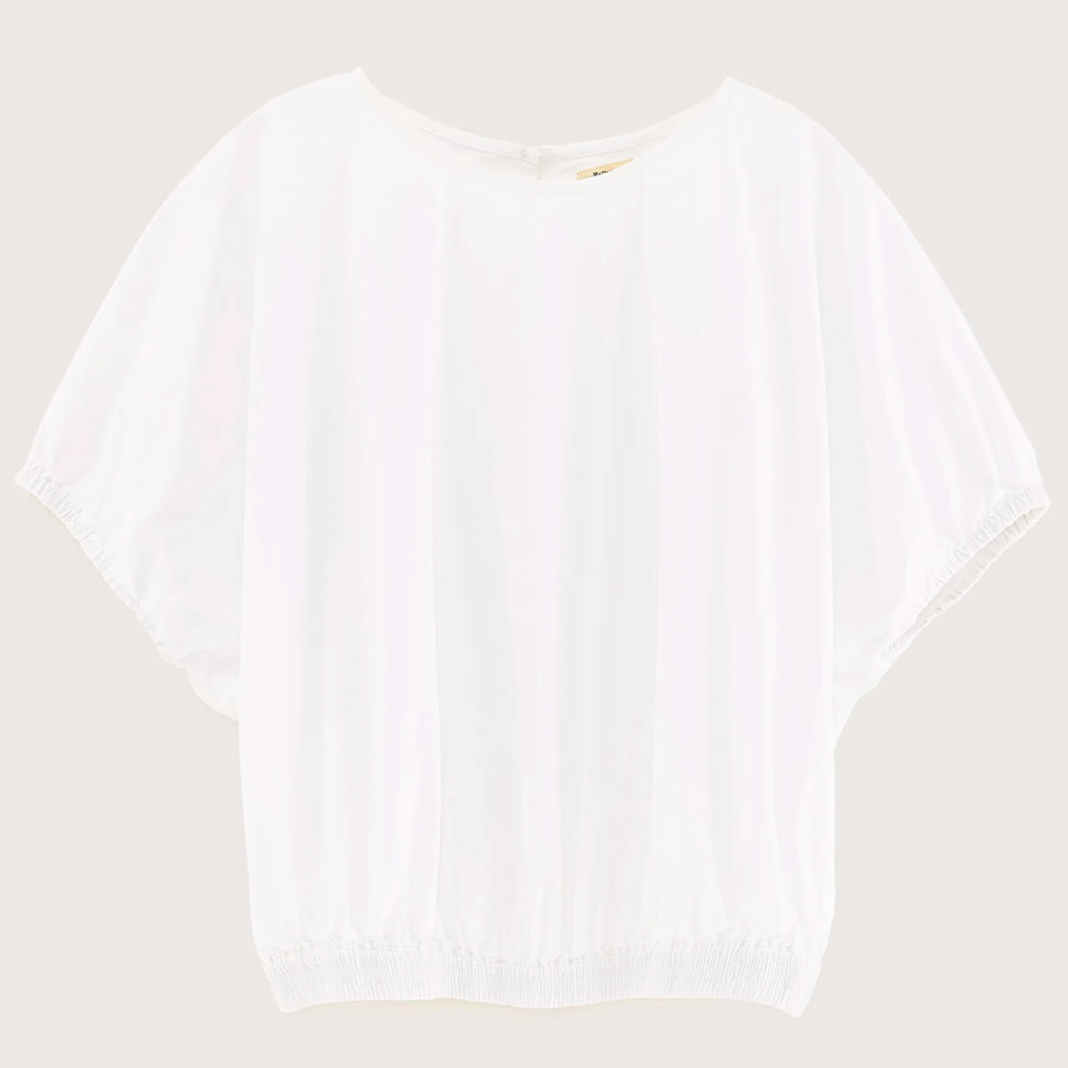 Wilma Blouse by Bellerose. Regular white blouse with an elasticated waistband and sleeves, featuring a loose gathered design.