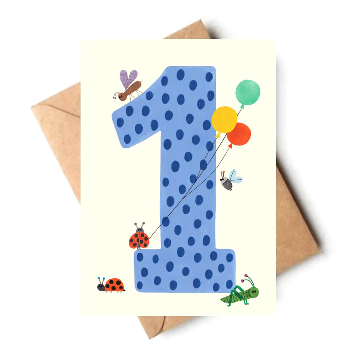Age 1 Birthday Greetings Card by Daria Solak Illustrations. Crafted in a standard A6 size, this card features hand-drawn illustrations, brimming with charm and character.