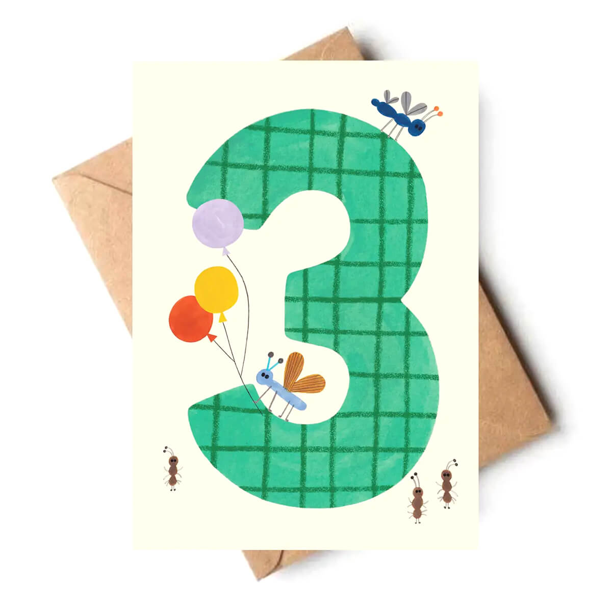 Age 3 Birthday Greetings Card by Daria Solak Illustrations