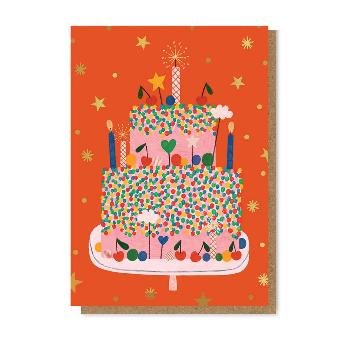 Celebration Cake Birthday Greetings Card by Daria Solak Illustrations. Celebrate their birthday with this joyful birthday cake card. Crafted in a standard A6 size, this card features hand-drawn illustrations, brimming with charm and character.