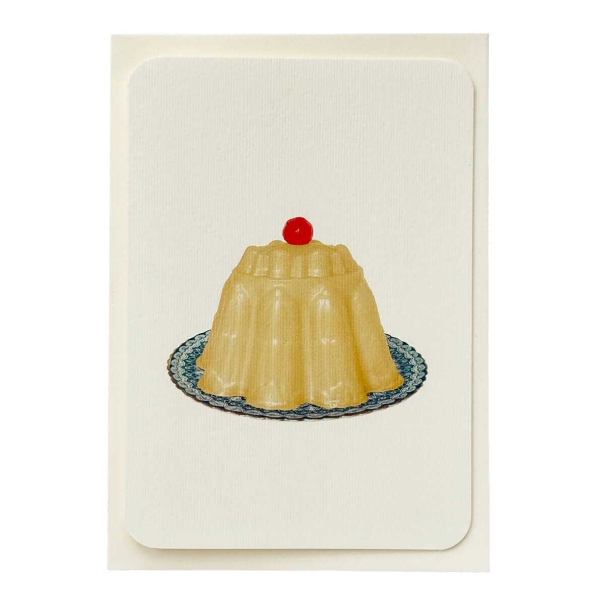 Custard Cream Blancmange Greetings Card by Canonbury Press. Inspired by vintage blancmange moulds and British dessert tables, this playful design brings culinary nostalgia to life. Photographed by Alexandra Simms and printed in England on luxurious Italian-milled card. Perfect for food lovers, dinner parties or as an elegant touch to any gift.