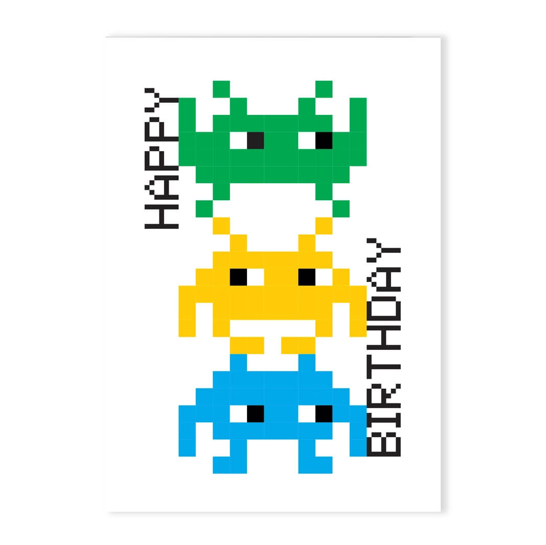 Invader Stack Birthday Greetings Card by Dicky Bird
