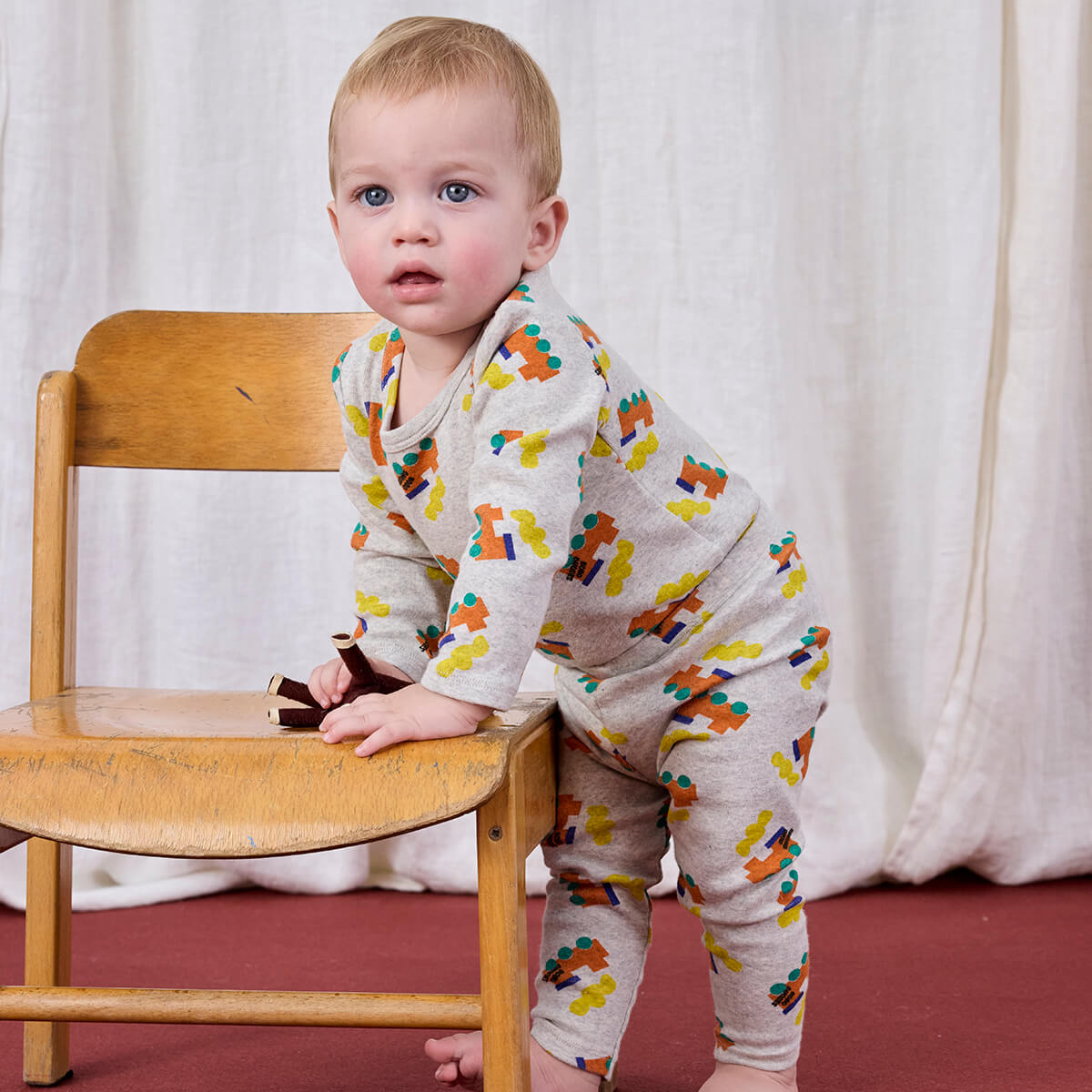 Bobo Choo Choo All Over Baby Body by Bobo Choses. This playful this bodysuit is ready for adventures. Made from 95% organic cotton and 5% elastane, it feels soft on the skin and offers a slim fit with a touch of stretch. Designed with long sleeves, a round neck, and both shoulder and crotch snap fastenings for practicality.