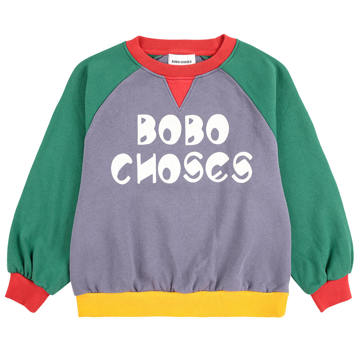 Bobo Choses Colour Block Raglan Sweatshirt by Bobo Choses. Soft and versatile, this multicoloured sweatshirt is designed for comfort. Made from 100% organic cotton, it features long raglan sleeves, ribbed cuffs, and a loose fit.