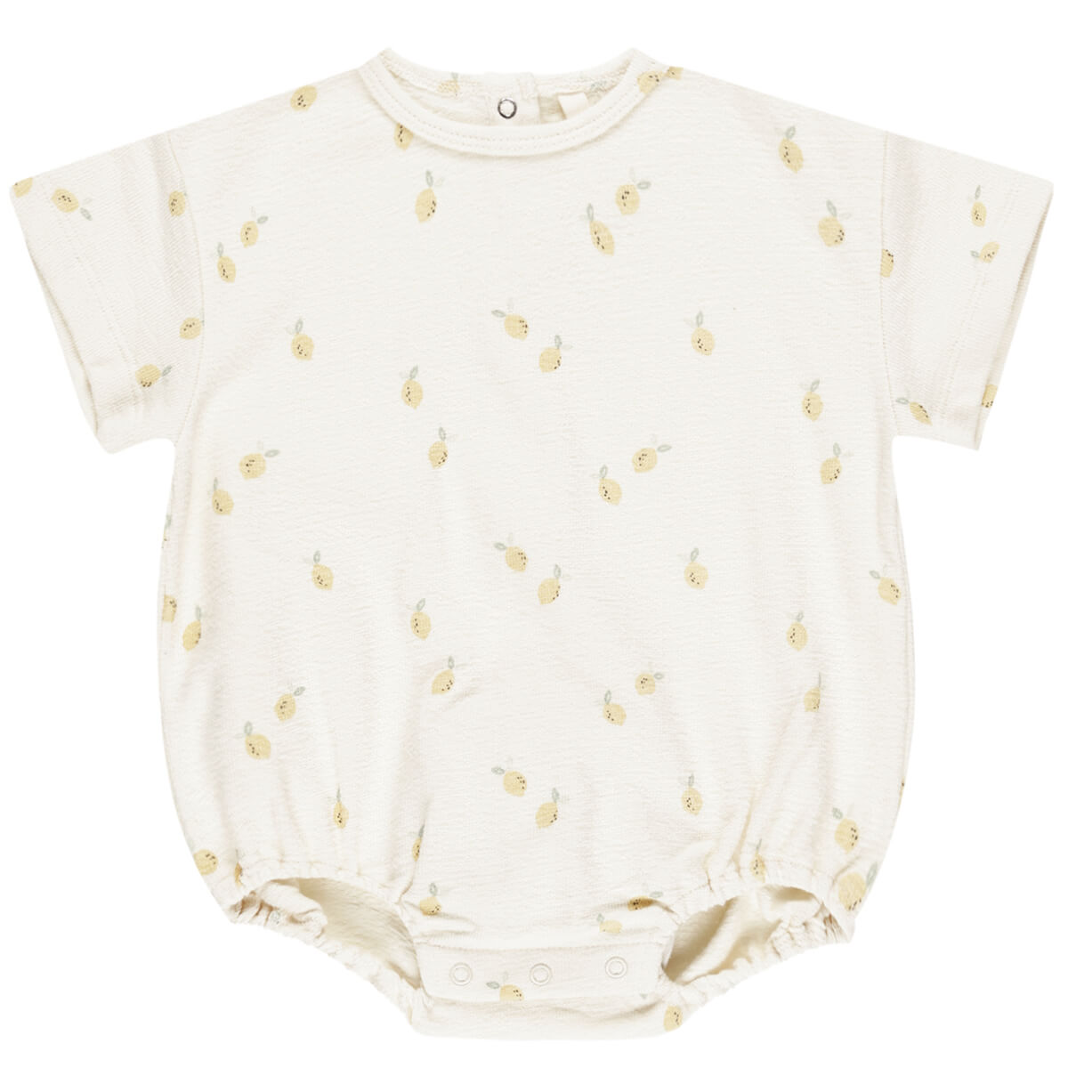 Relaxed Short Sleeve Bubble Romper in Lemons by Quincy Mae - Last Ones In Stock - 3-12 Months