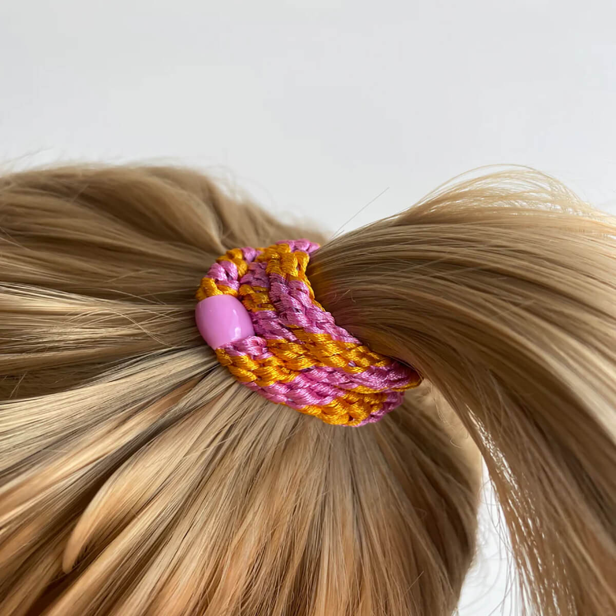Kknekki snag free hair band by Bon Dep. The best hair ties ever made! The plastic bead and braiding ensures that it doesn't damage the hair. The hair band will also keep its shape when used. You may swim with it and shower with it. And it also looks great worn as a bracelet too.