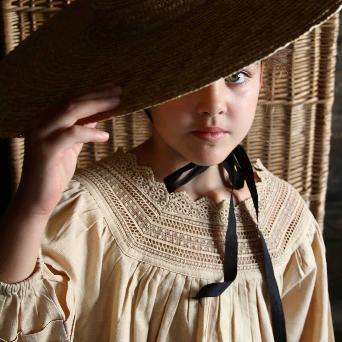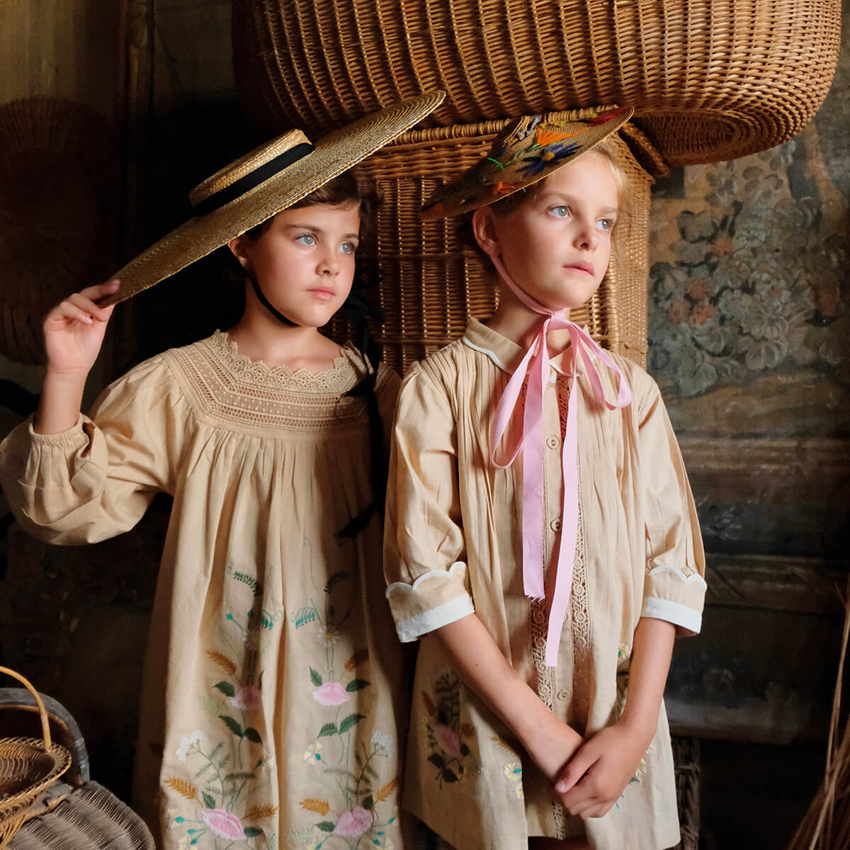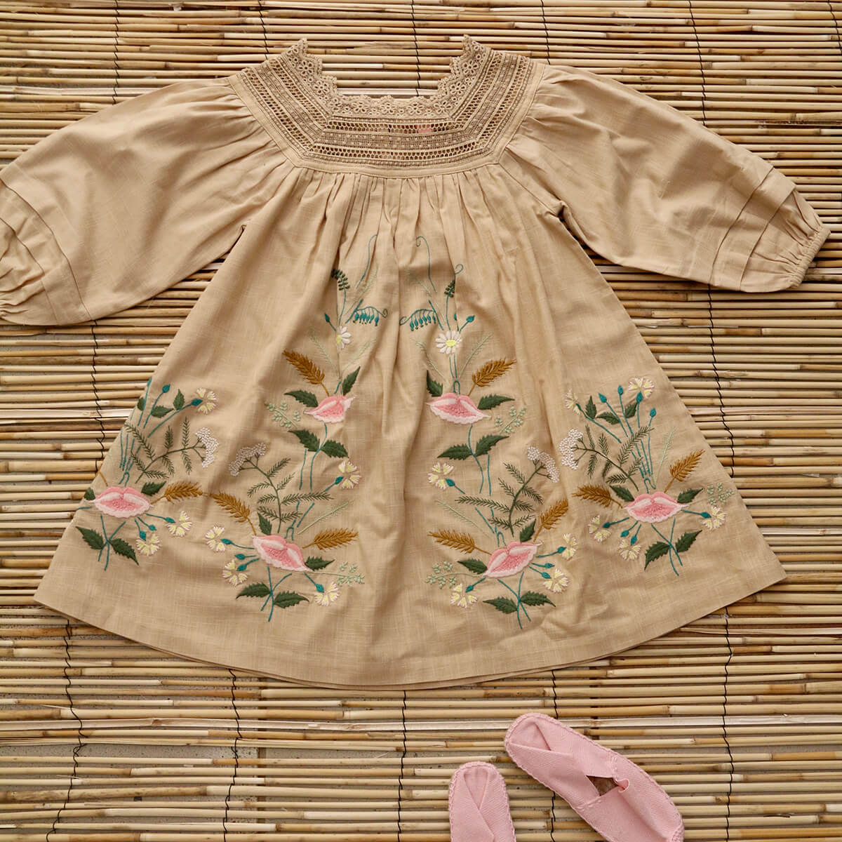 Embroidered Garden Dress in Sand by Bonjour - Last Ones In Stock - 8-10 Years