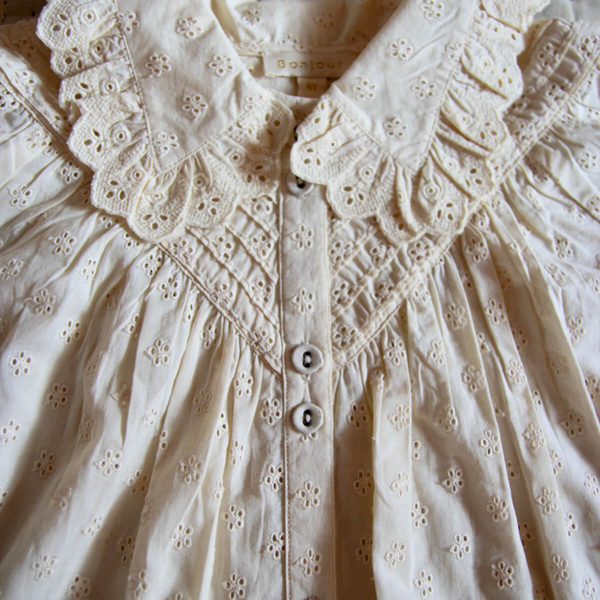 Iris Blouse in Natural Broderie Anglaise by Bonjour