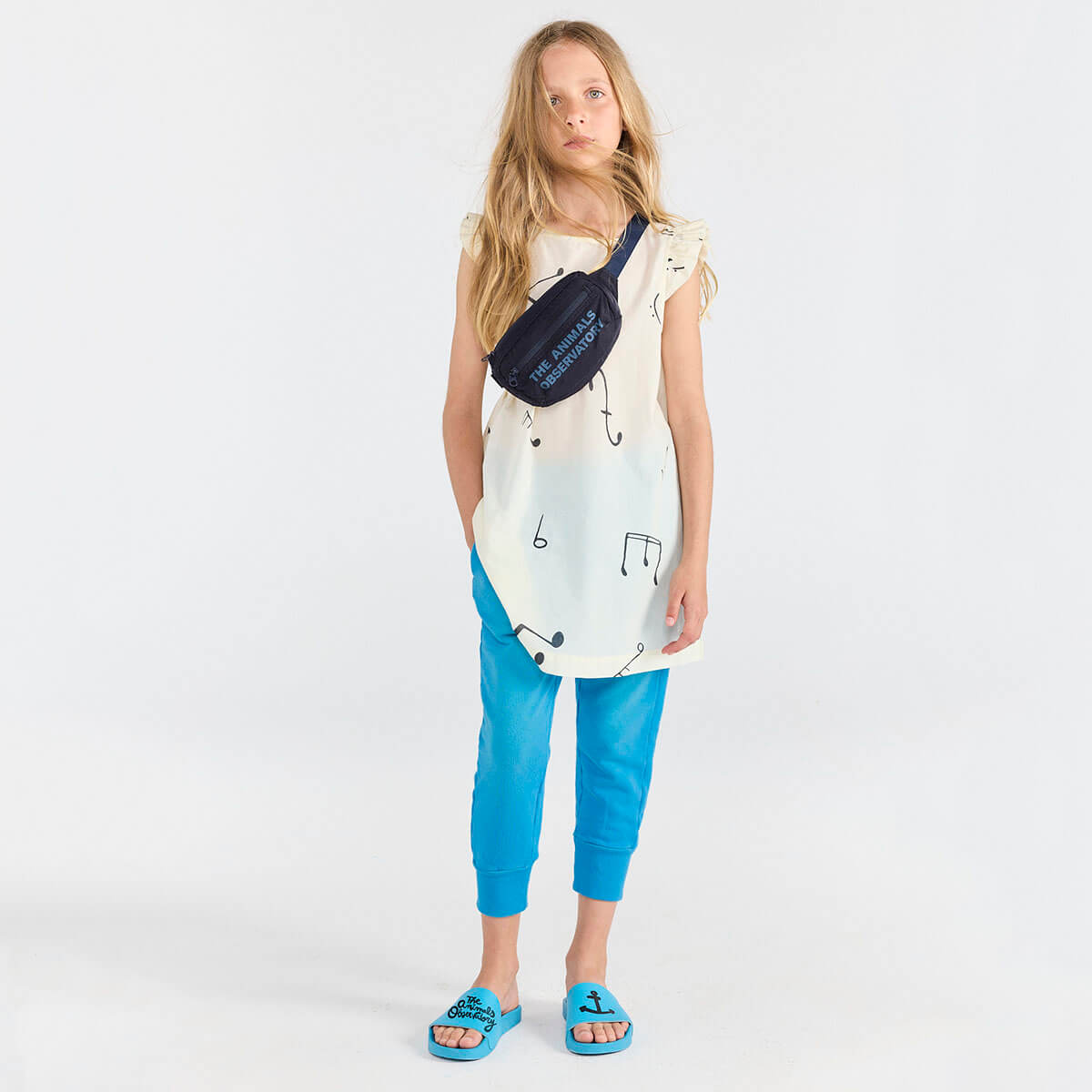 Panther Kid Sweatpants by The Animals Observatory. Blue joggers featuring a small anchor on the back, blending sporty comfort with bold colour, inspiring everyday adventures. The perfect fabric for summer with unbrushed fleece.