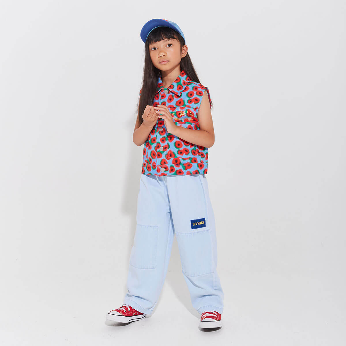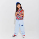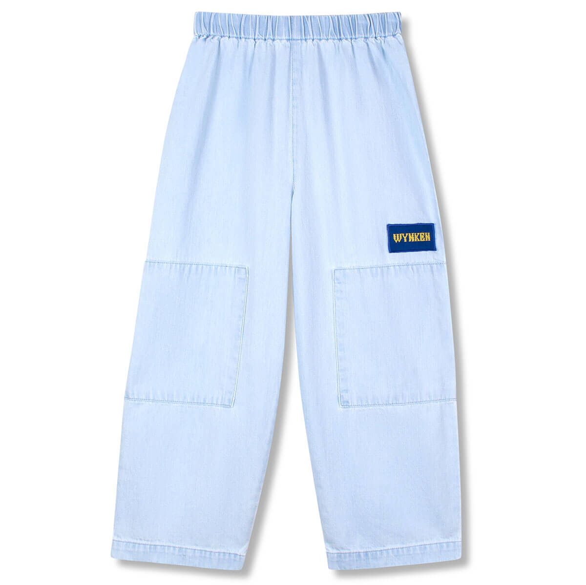 Pull On Patch Jean by Wynken. Soft, lightweight, and breathable, these 100% cotton pale-bleach jeans keep kids cool on warm summer days. A fully elasticated waistband makes them easy to pull on and off, ensuring a comfortable, independent fit. Square knee patches add extra protection for playful adventures while providing a fun, practical detail.