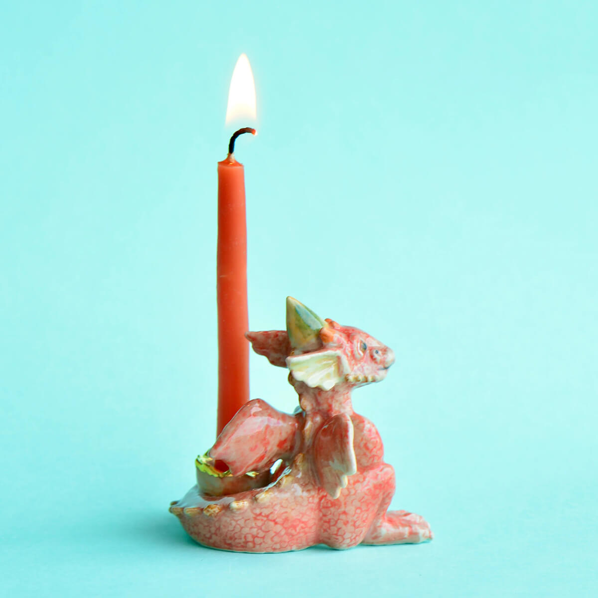 Dragon ceramic cake topper by Camp Hollow. Start a celebration with this Chinese zodiac inspired collectible keepsake, featuring a gold lustre cup that holds a standard size birthday candle. Crafted in fine porcelain and meticulously hand-painted, this beautiful heirloom quality candle holder will celebrate every birthday and occasion for years to come.