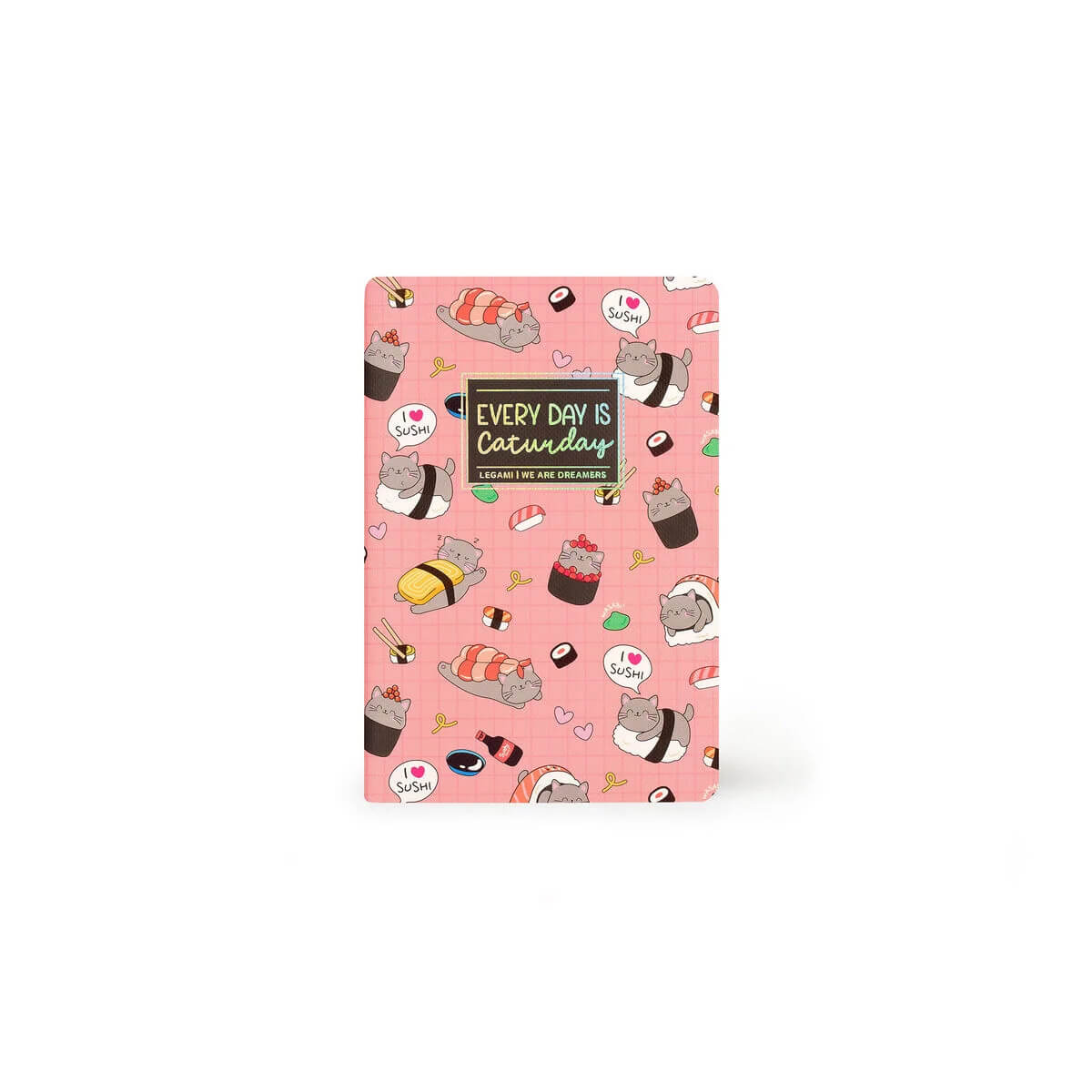 Sushi Cat Lined Notebook by Legami. For those who love to see everything all neatly lined up! Take note, whatever the weather with the Legami Sushi Cat Notebook with lined pages - Small. At A6, it's the perfect size to throw into your bag and take with you, so you never lose track of your ideas.
