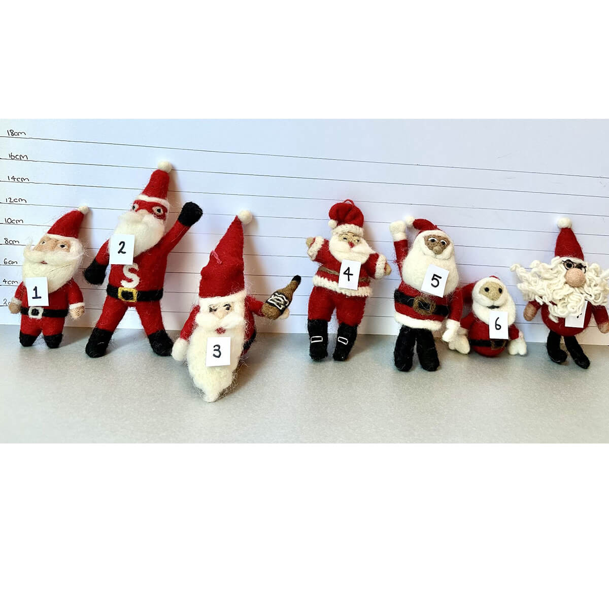 Classic Santa hanging Christmas decoration by Felt So Good. Santa has a perfectly groomed beard and moustache, shiny black boots and iconic red hat - sometimes you just can't beat the classics. This Santa started his journey in the Himalayas and is travelling via sleigh to the North Pole. Classic Santa has been handcrafted using traditional needle felting techniques and sustainable and biodegradable materials.