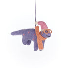 Demi The Dinosaur Hanging Decoration by Felt So Good. Demi is here for the cosy vibes this winter season. Her delicate Peach scarf and wire glasses wrapped in peach coloured felt compliment her lilac body perfectly. Handmade using traditional hand-felting techniques.