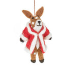 Noelle The Deer hanging Christmas decoration by Felt So Good. This Christmas Diva is "deer" to our hearts and we can't wait to add her to our Christmas tree. Her wet felted Christmas coat has been handstitched to her needle felted body by skilled Nepalese artisans. Hand felted hanging decoration.