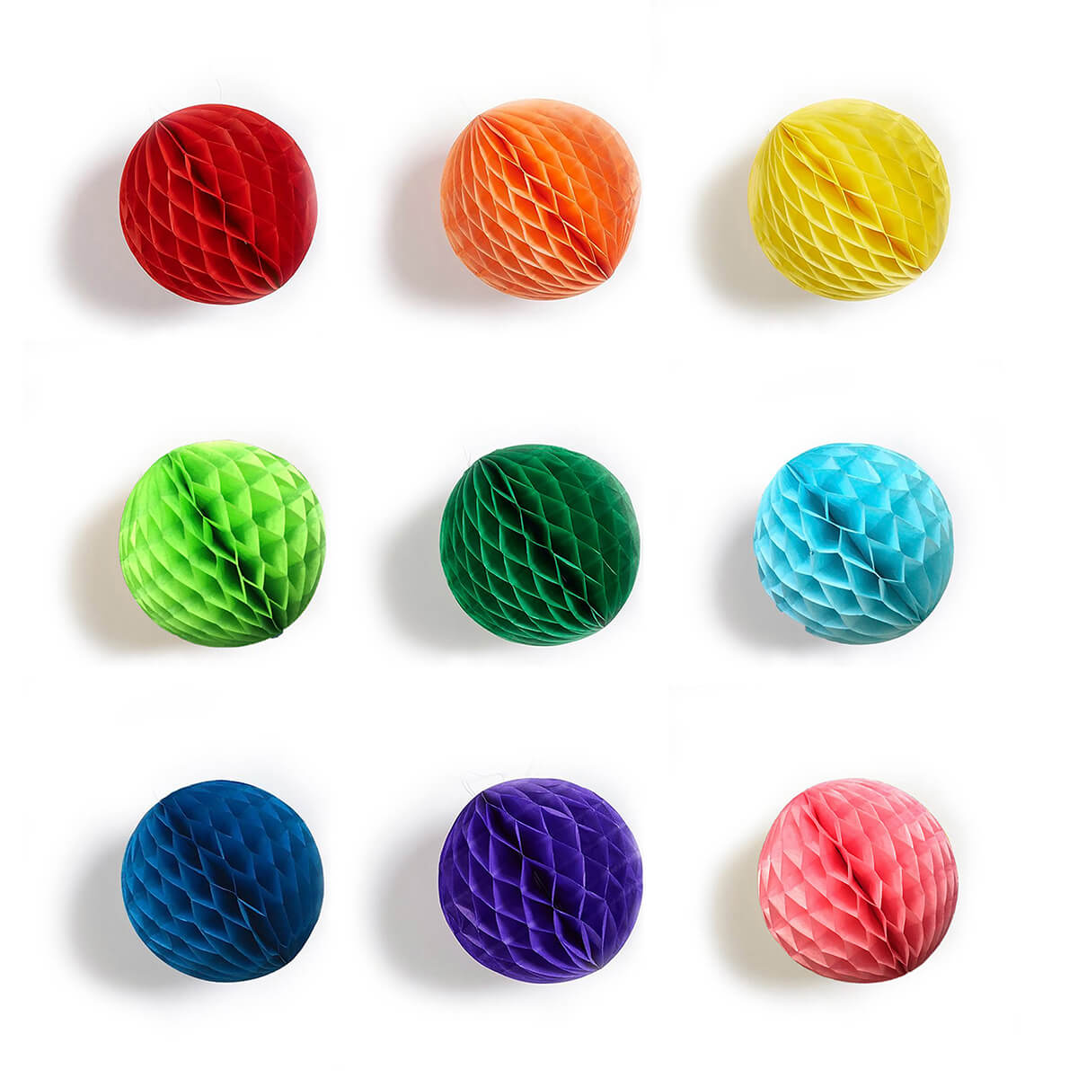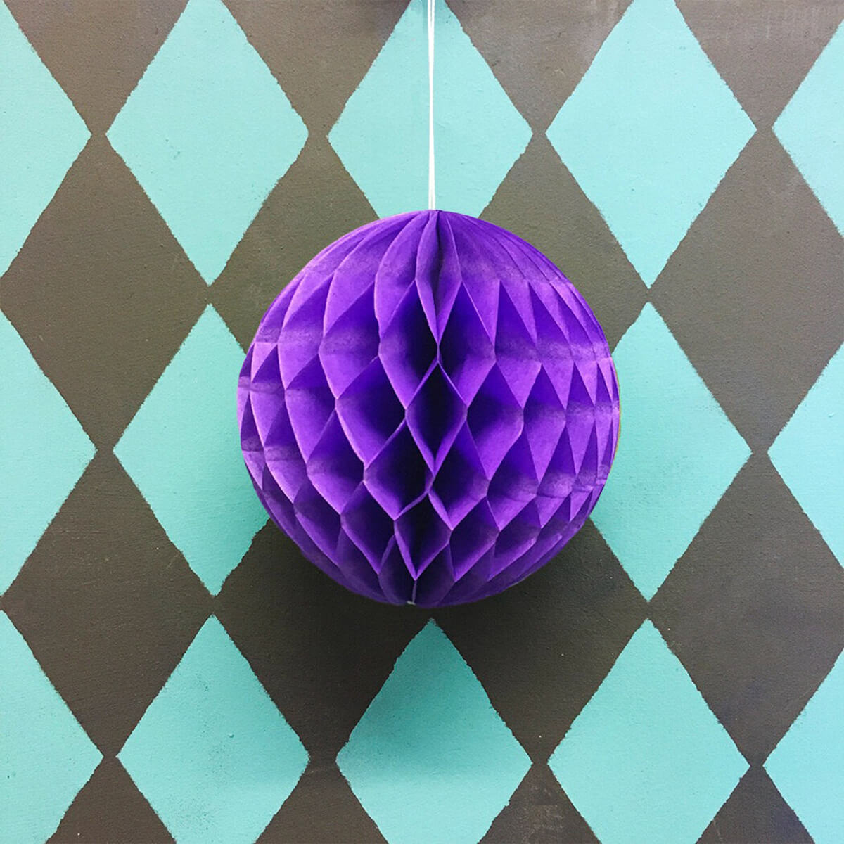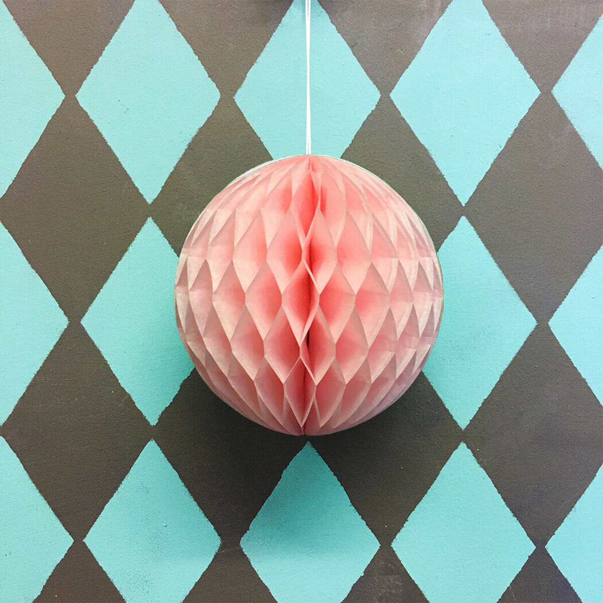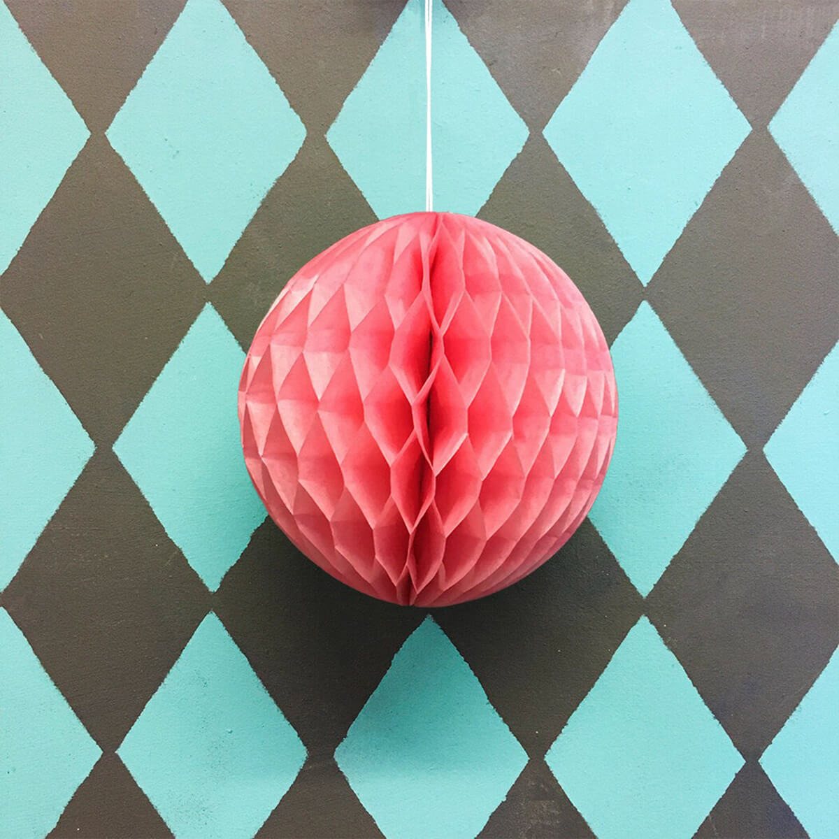Paper ball decoration by Petra Boase. A colour popping paper ball decoration to decoration your home for every day or special occasions. We recommend using a paper clip to close the ball so you can re use them year after year. Each honeycomb paper ball decoration has a white hanging string, adhesive tape strip and is supplied flat in a clear bag. An eco-friendly party decoration.