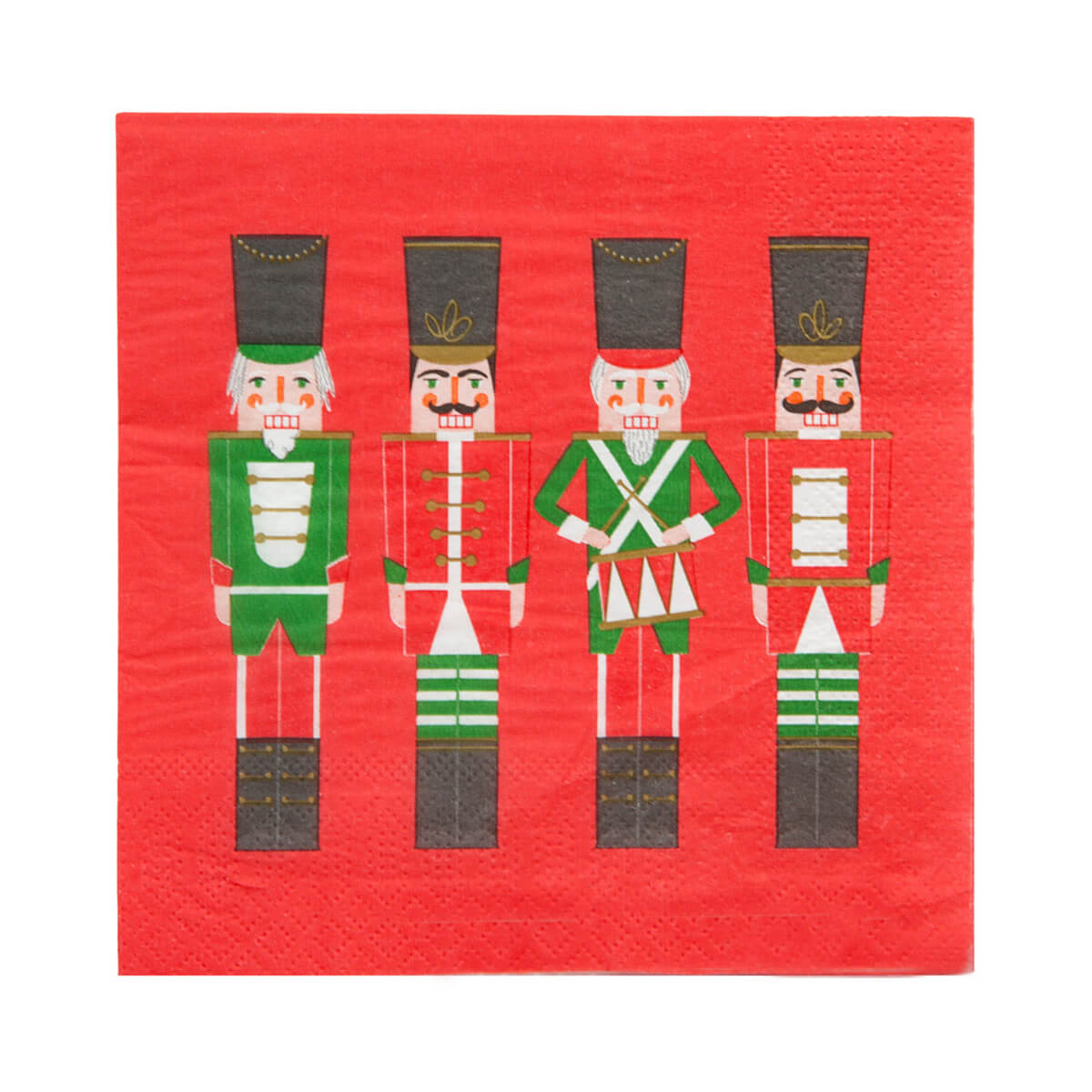 Nutcracker Napkins by Talking Tables. Stand your table to attention with these bright red nutcracker napkins. Pair with our nutcracker Christmas crackers and Poppers to have a fully classic Christmas table.