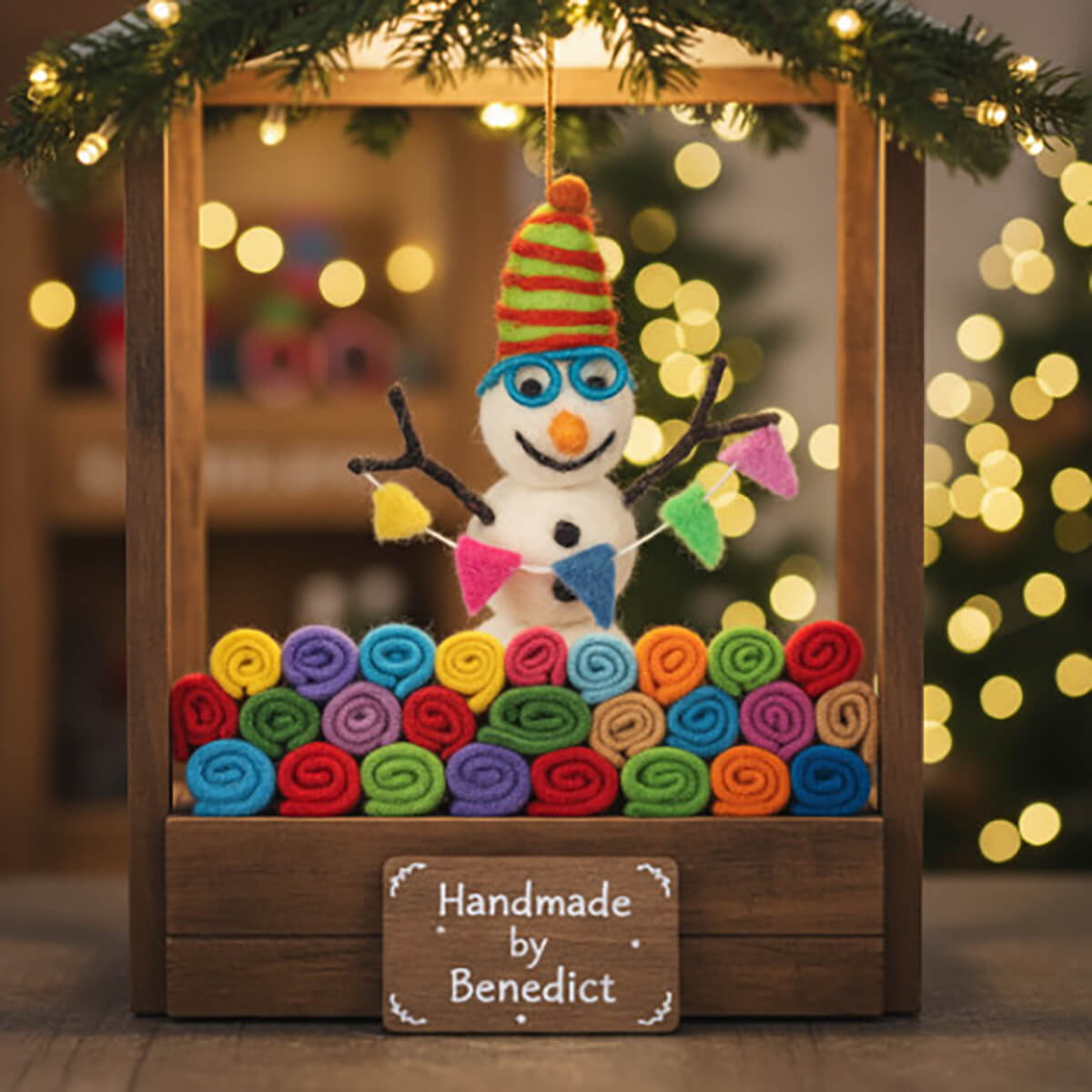 Benedict The Snowman Arctic Hanging Decoration by Felt So Good. Benedict is throwing the best party in town and wants to impress Betty the Snowman with his decorations! Handmade using traditional hand-felting techniques.