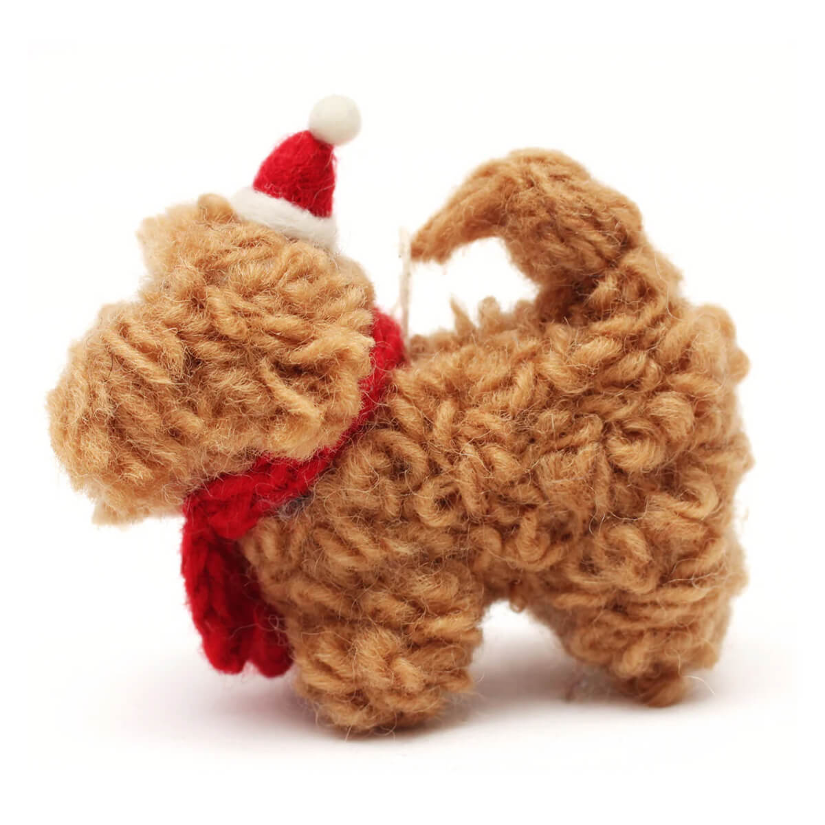 Christmas Cockapoo in Hat & Scarf Hanging Christmas Decoration by Amica. Almost as cute as the real thing - a beautifully handmade Cockerpoo in hat & scarf. Comes with a hanging loop ready to go on the Christmas tree. A beautiful, handmade and fair trade felt decoration.