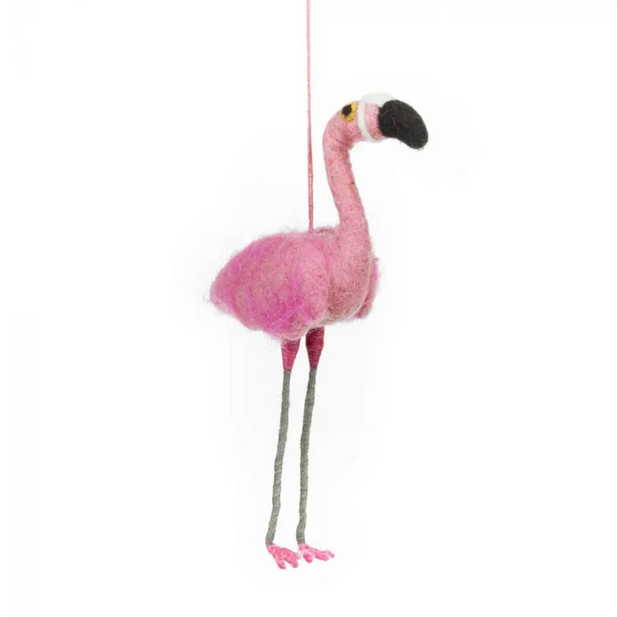 Frankie Flamingo Hanging Decoration by Felt So Good. Frankie the felt Flamingo is looking flamboyant as ever! Whether it's for your Christmas tree, or just for the fun of it, there's not on occasion where a flamingo isn't appropriate in our opinion! Handmade using traditional hand-felting techniques.