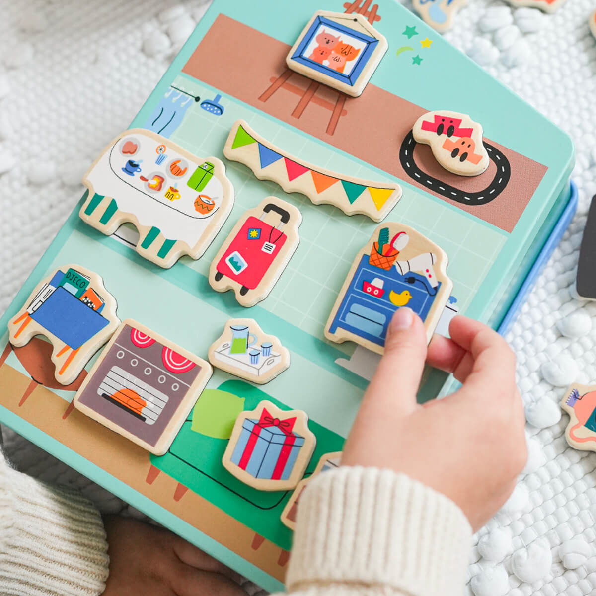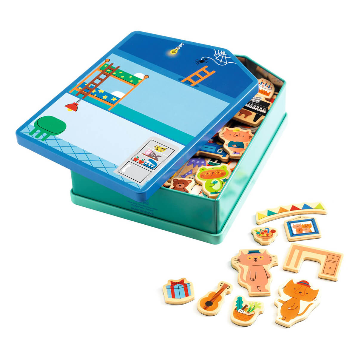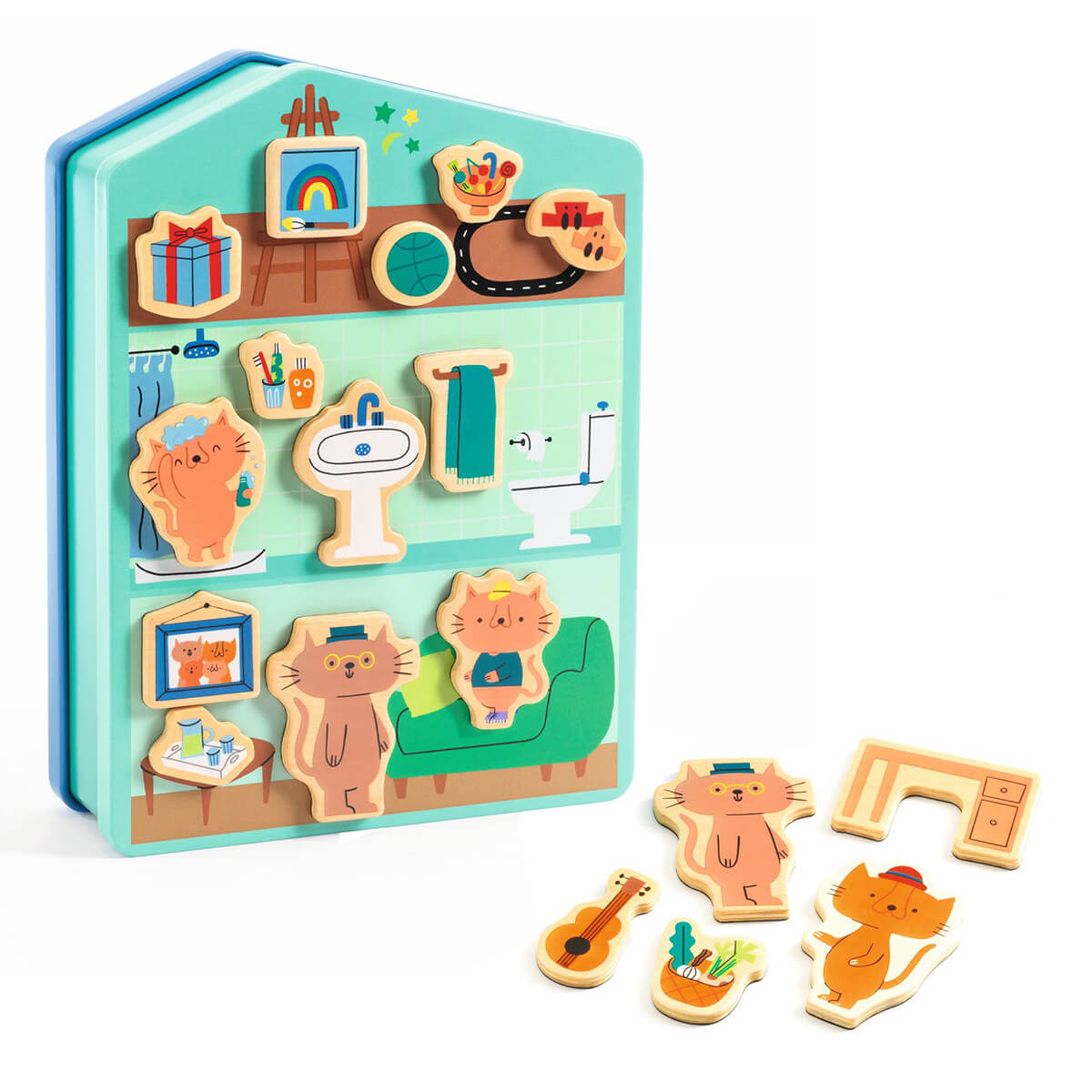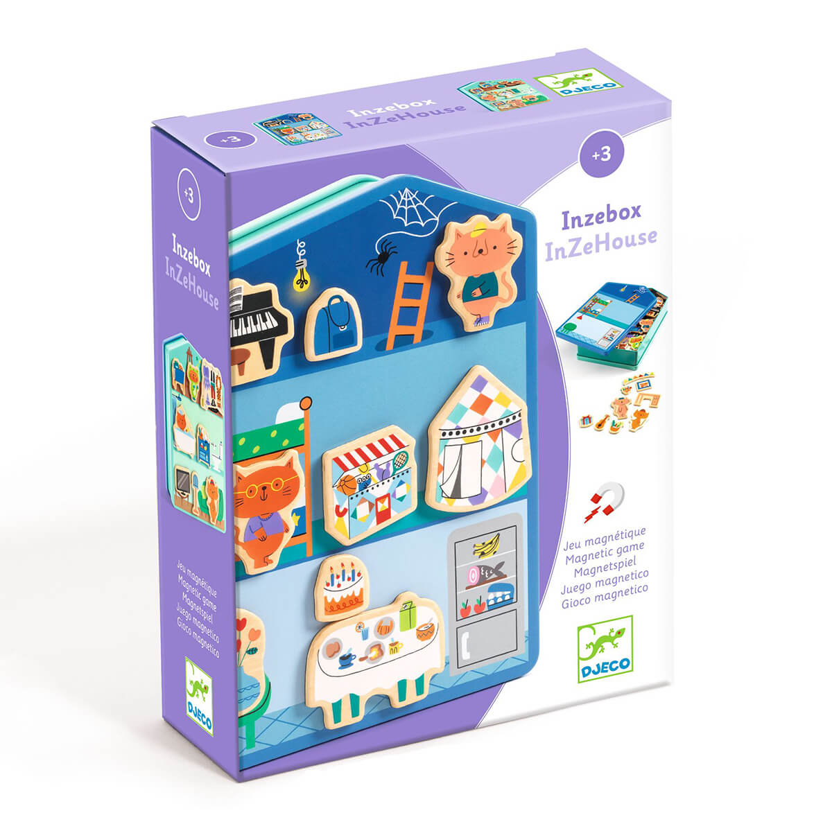 InZeHouse Inzebox Wooden Magnets Create Kit by Djeco. Inzebox, the child plays with wooden magnets on a house-shaped metal box to have fun animating and decorating the 6 rooms (the attic, the bedroom, the kitchen, the living room, the bathroom and the playroom)!