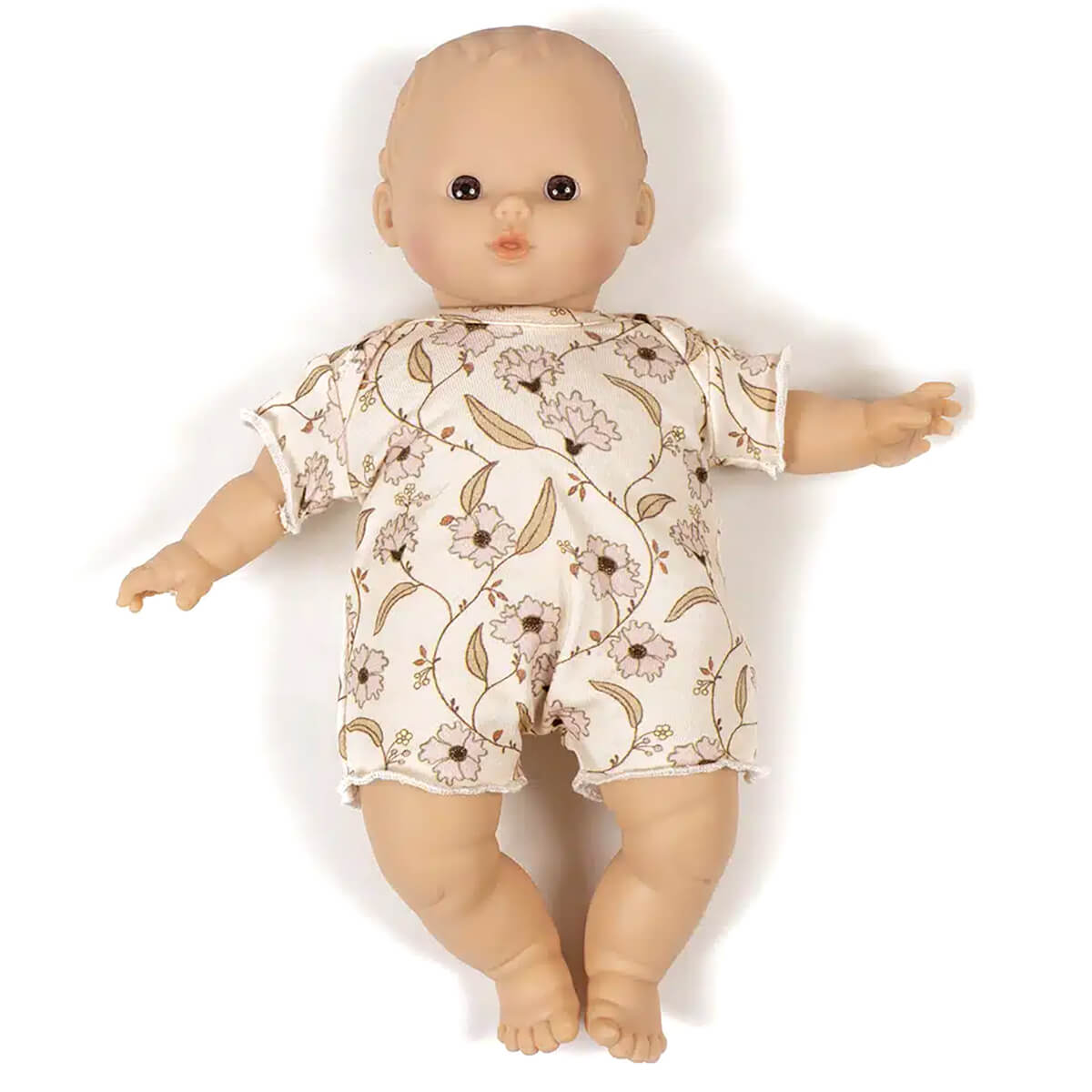 Shorty romper and headband set by Minikane. Beautiful handmade doll's short sleeve romper and matching headband in jersey cotton. Fits the Paola Reina 28cm soft bodied baby dolls.