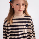 Fanned Out Dress in Dark Blue Fine Stripe by Repose AMS