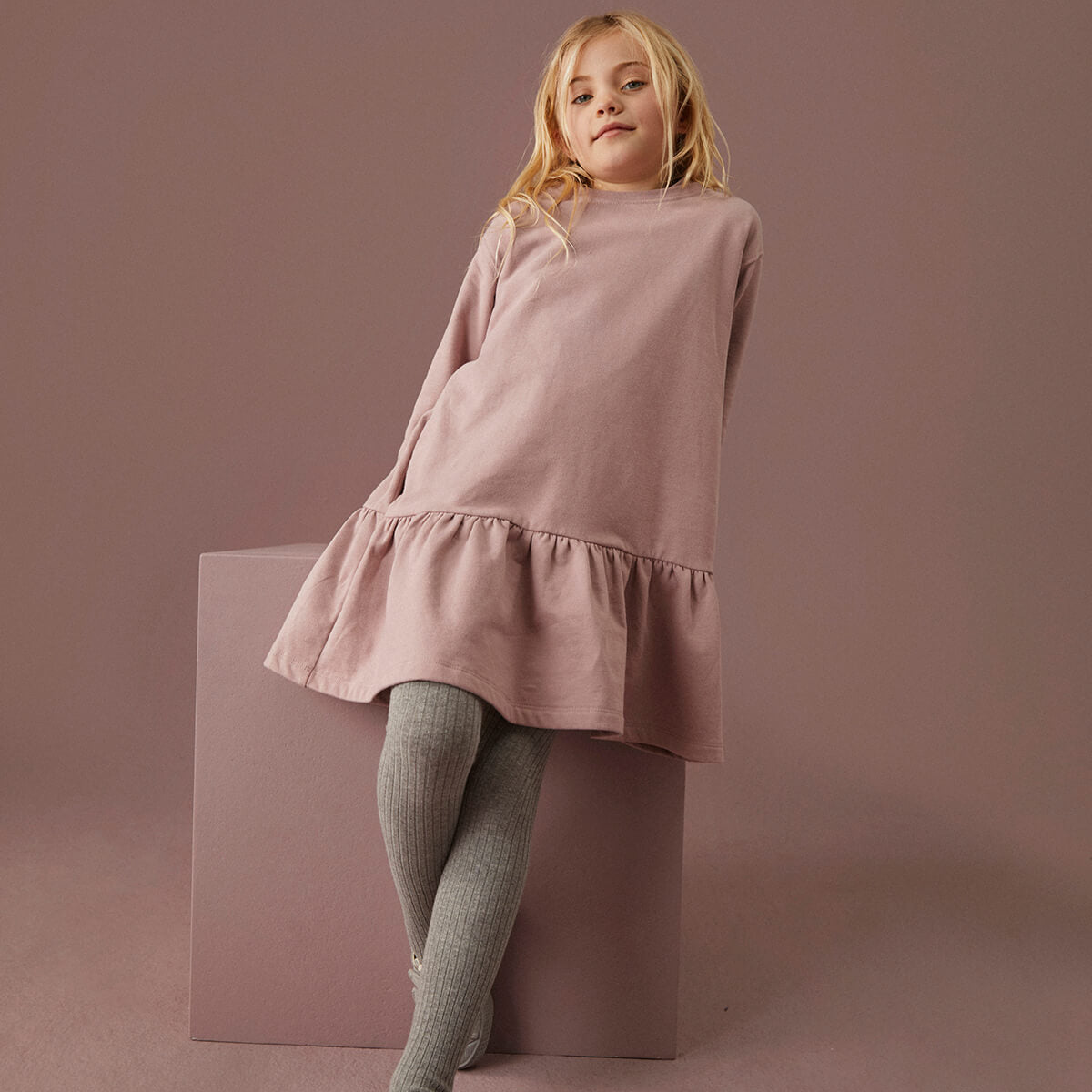 Frill Dress by Gray Label. A-line dress crafted from soft organic cotton. Designed with long sleeves, a round neck and frill hem detail.