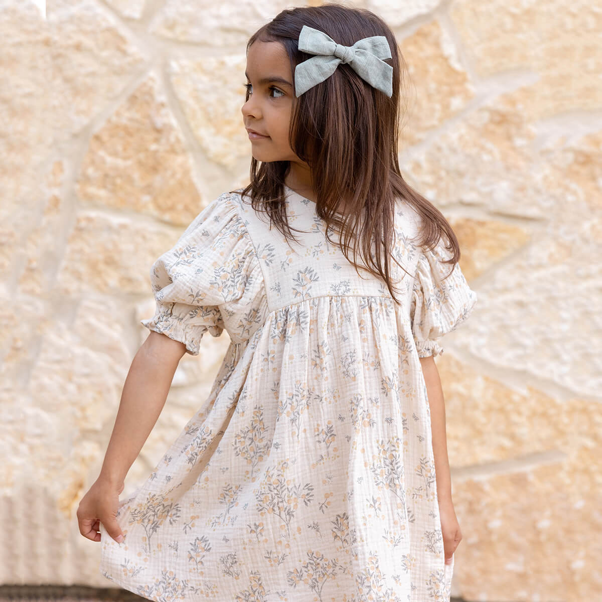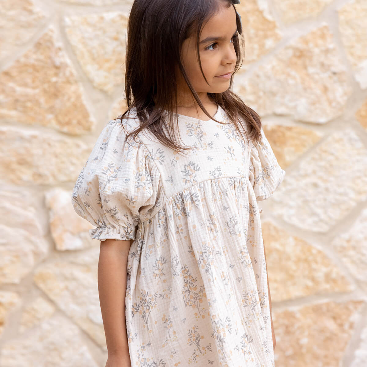 Jolene dress by Rylee & Cru. This pretty v-neck dress features puff sleeves and a babydoll inspired silhouette with a curved waistline.
