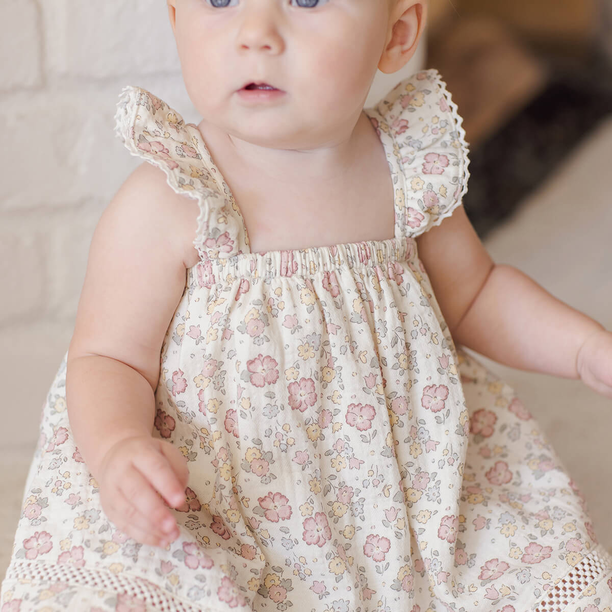 Smocked Jersey Dress in Pink Blossom by Quincy Mae