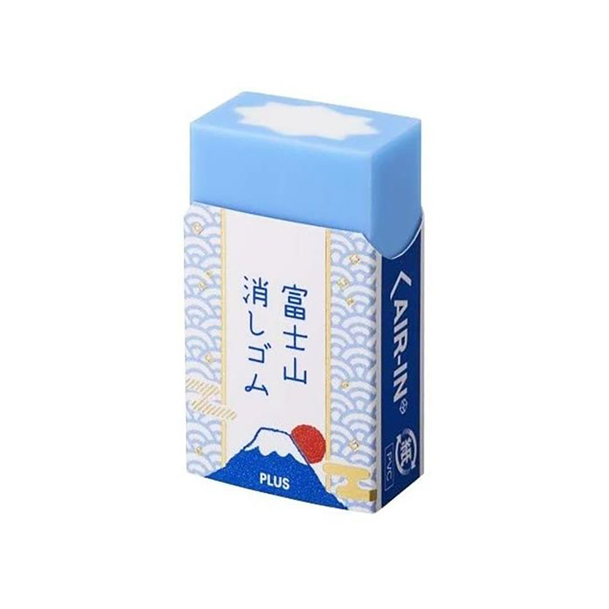 Air In Mount Fuji Eraser by Plus Japan. Erase evenly in all directions — left, right, front, and back — and the eraser gradually takes on a mountain shape, revealing the iconic silhouette of Mount Fuji. With each use, the eraser changes shape and reveals a new expression, making the act of erasing itself a source of enjoyment. In a traditional Japanese patterned case with foil stamping. Six designs are available, including Ichimatsu (checkered) and Shippo Tsunagi (linked circles). Like the rest of the "Air-In" eraser series, this eraser is made with resin infused with porous ceramic powder, ensuring a light and smooth erasing experience.